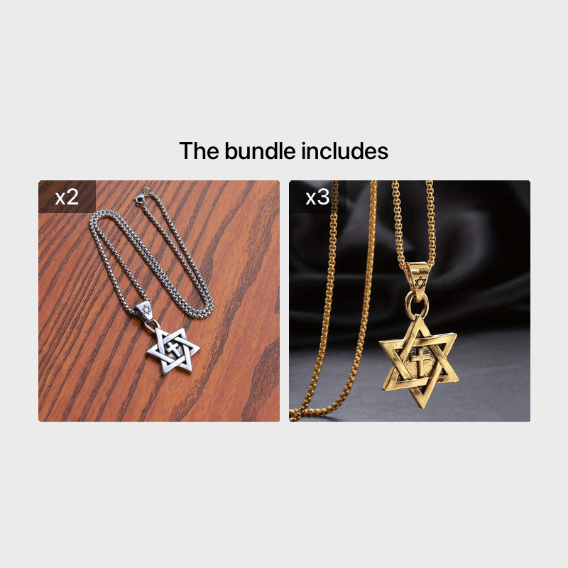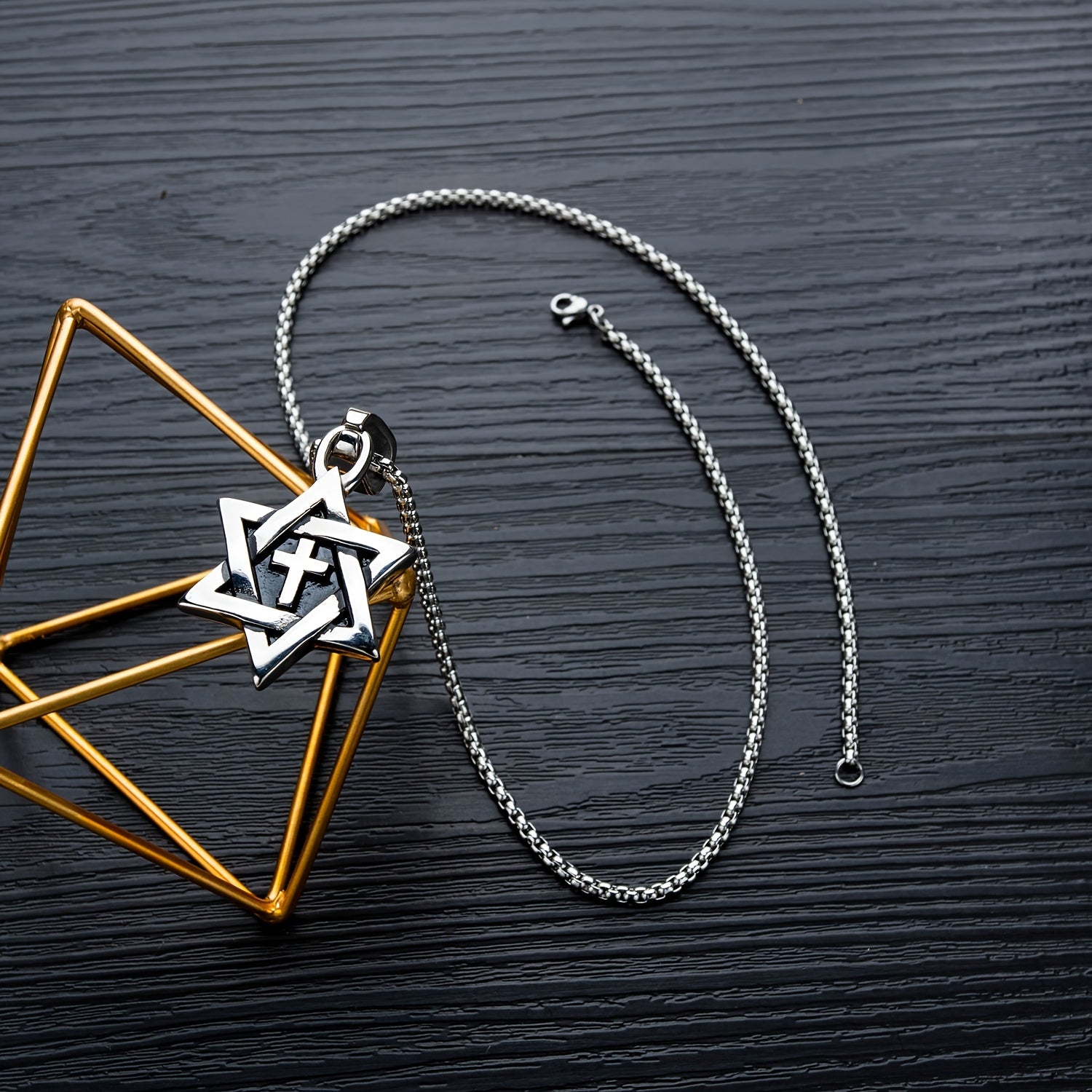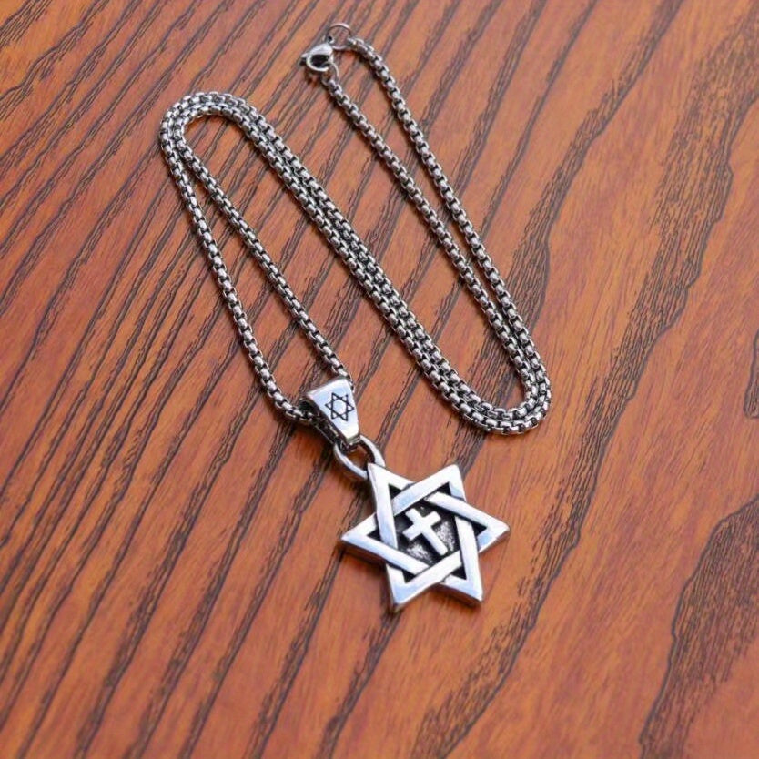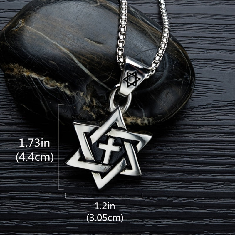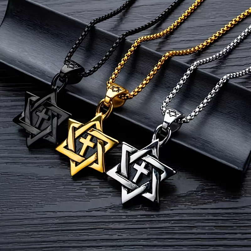 Stainless Steel Christian Cross Star Of David Pendant Necklace