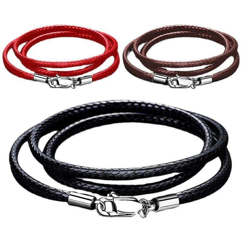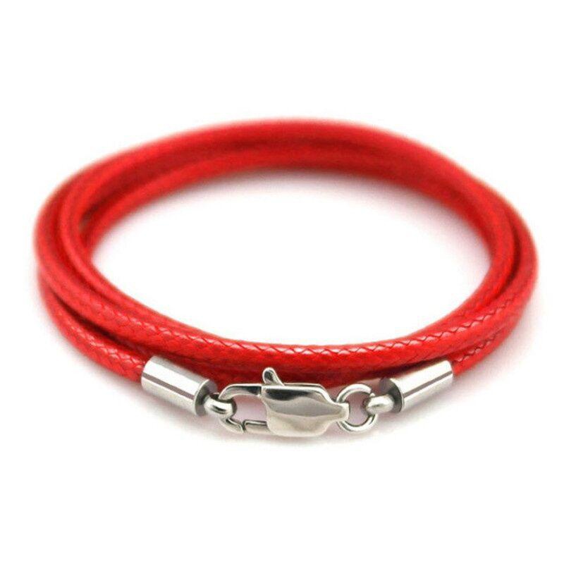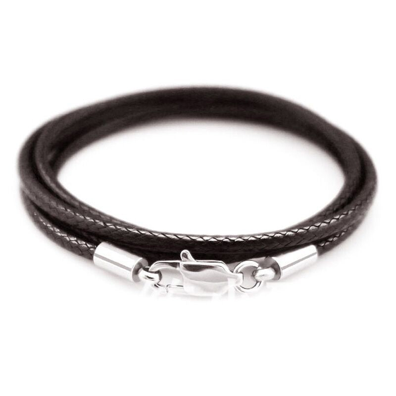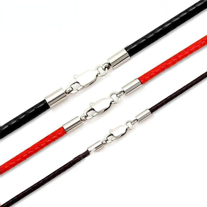 This leather cord necklace chain features a stainless steel lobster clasp connector and comes in round waxed rope. Ideal for men and women.