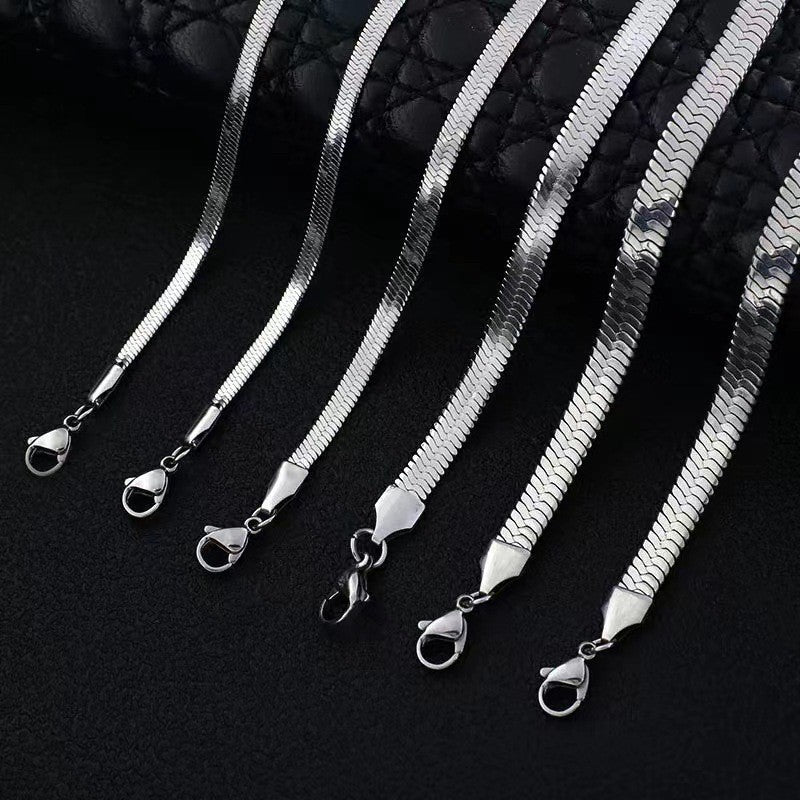 This stainless steel snake chain is perfect for men's accessories and jewelry. Available in 2.5mm, 3mm, and 4mm sizes.