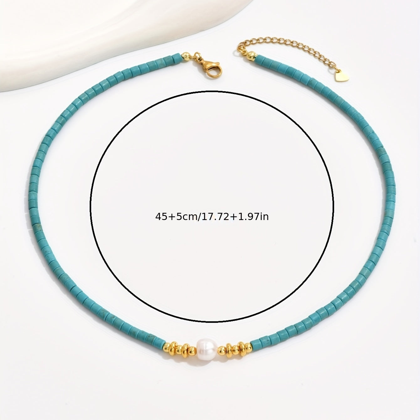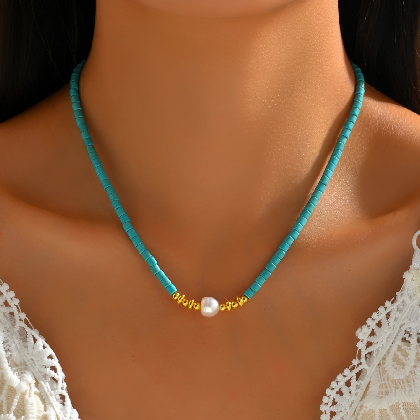 Add a touch of elegance to any outfit with this stunning turquoise mixed freshwater pearl collarbone chain necklace. Perfect for dates or holidays.
