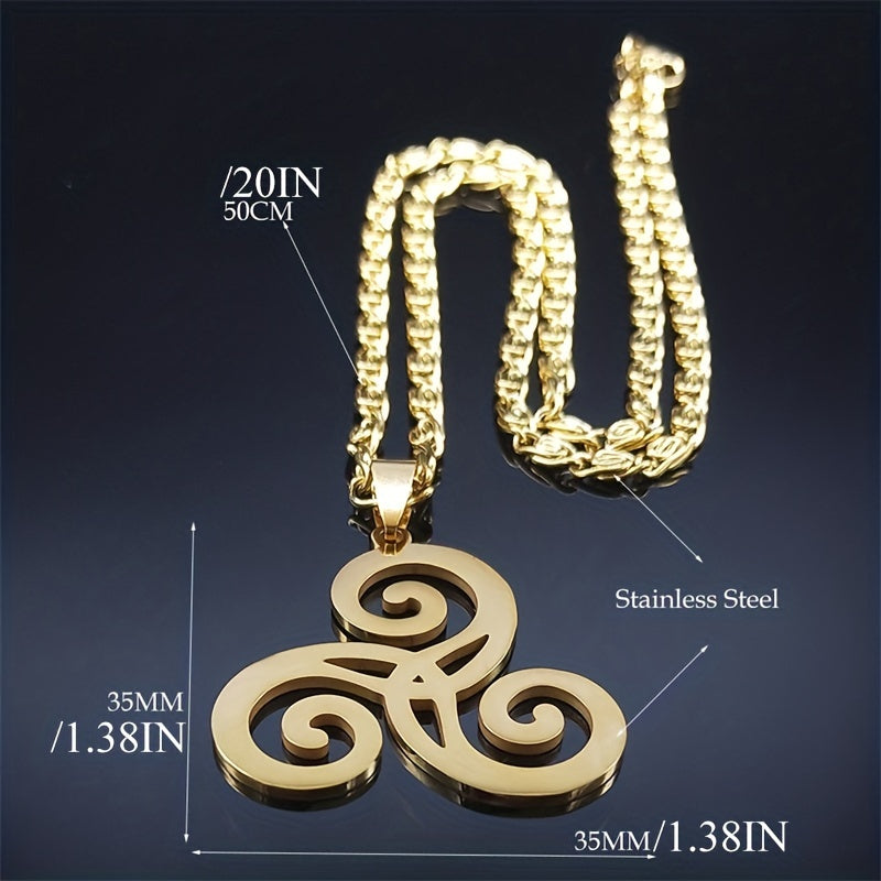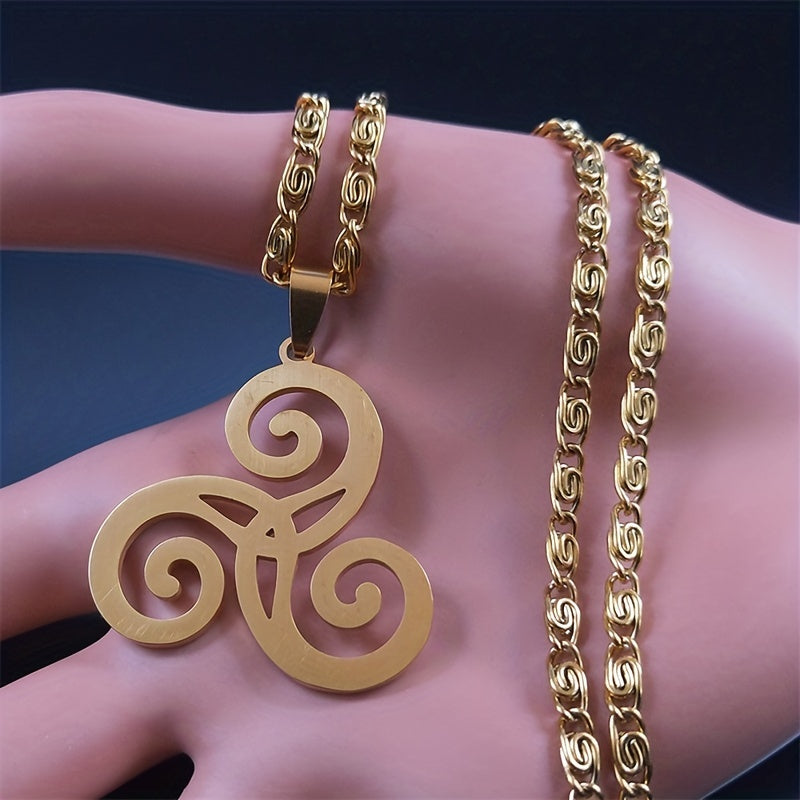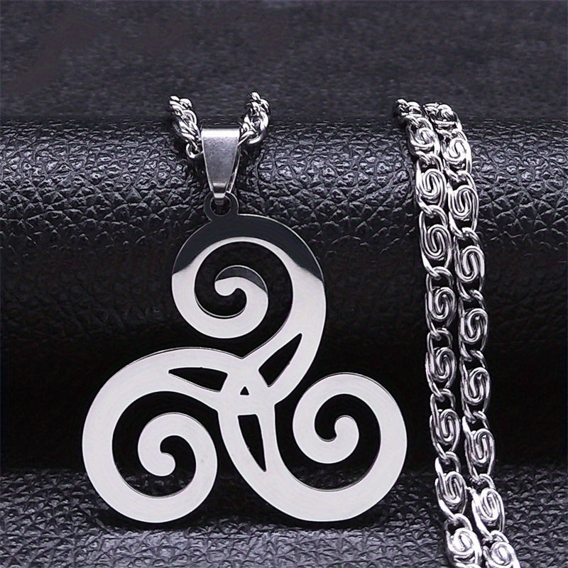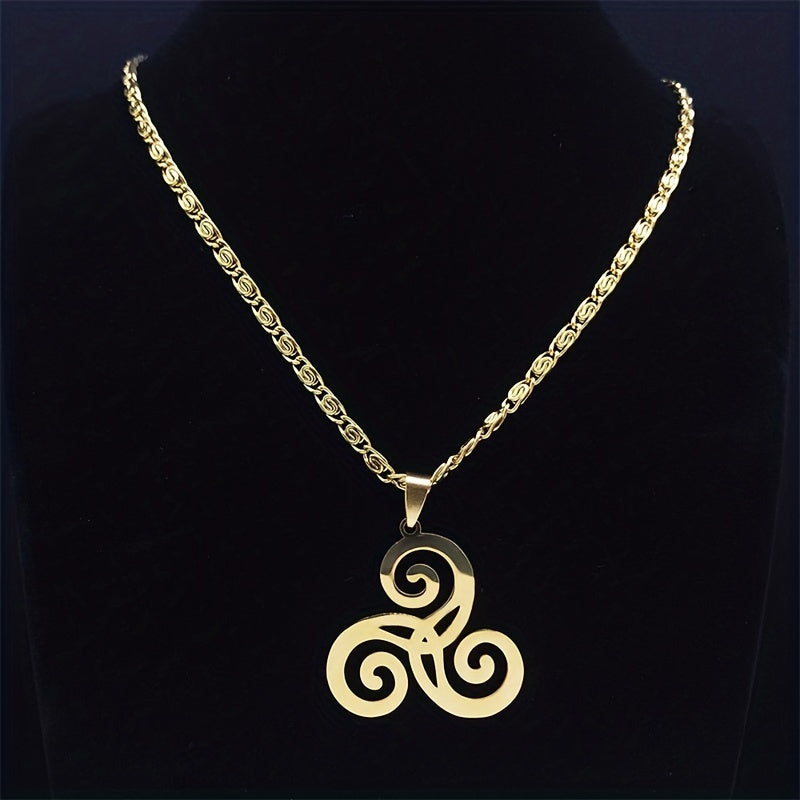 This Triskele triskelion necklace features a triple spiral design, perfect for expressing your witchy style. Crafted from stainless steel, it is durable and stylish.