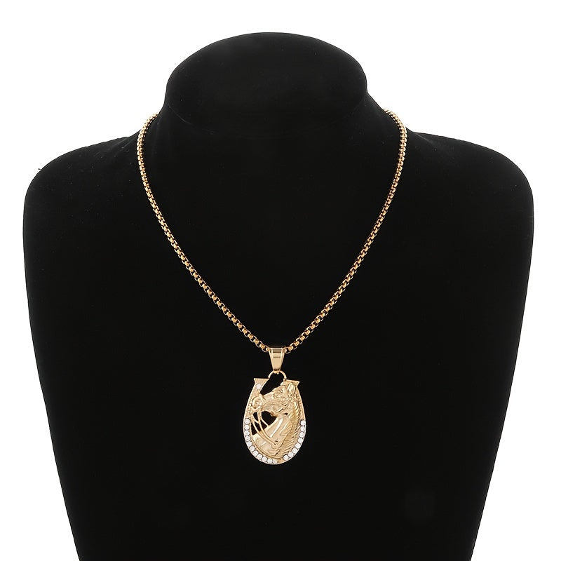 Zircon Horse Head Horseshoe Pendant Necklace Men's Hip Hop Rock Jewelry