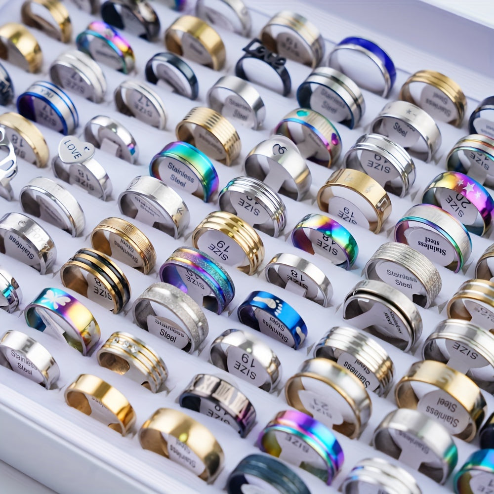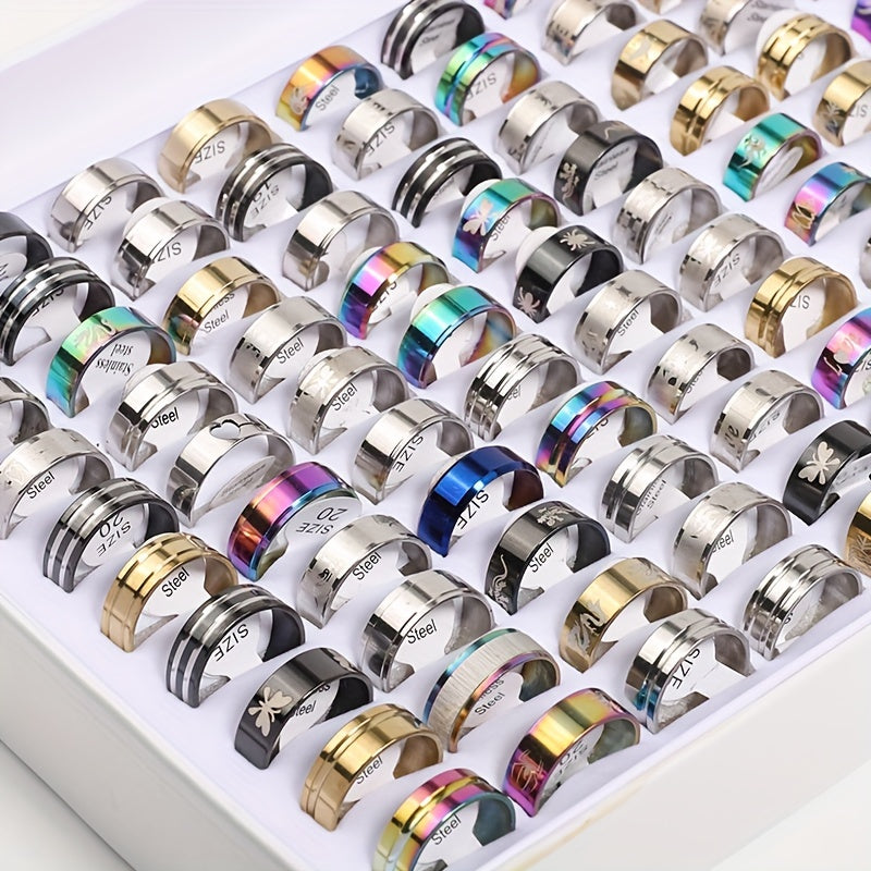 This lot includes 20 stainless steel rings with classic mixed styles that are perfect for weddings and parties.