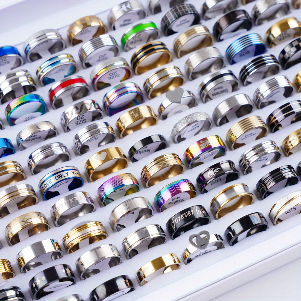 Elevate your style with this set of 20 stainless steel rings featuring stripe letter design and sparkling rhinestones. Perfect for parties and everyday wear.