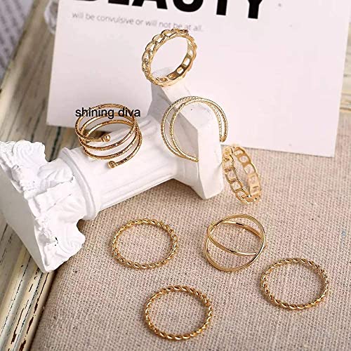 Boho Midi Finger Crystal Rings Set - 8-Piece Alloy
