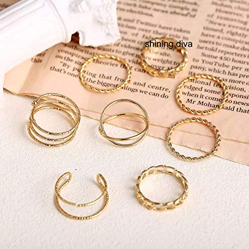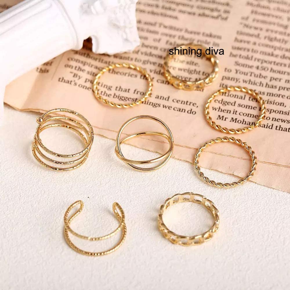 This 8-piece set of metal alloy boho midi rings features stunning crystal designs. Perfect for adding a touch of elegance to your outfit.