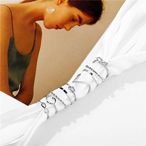 Enhance your style with these stunning metal alloy midi rings featuring crystal accents. Set of 9 rings to mix and match for a boho chic look.
