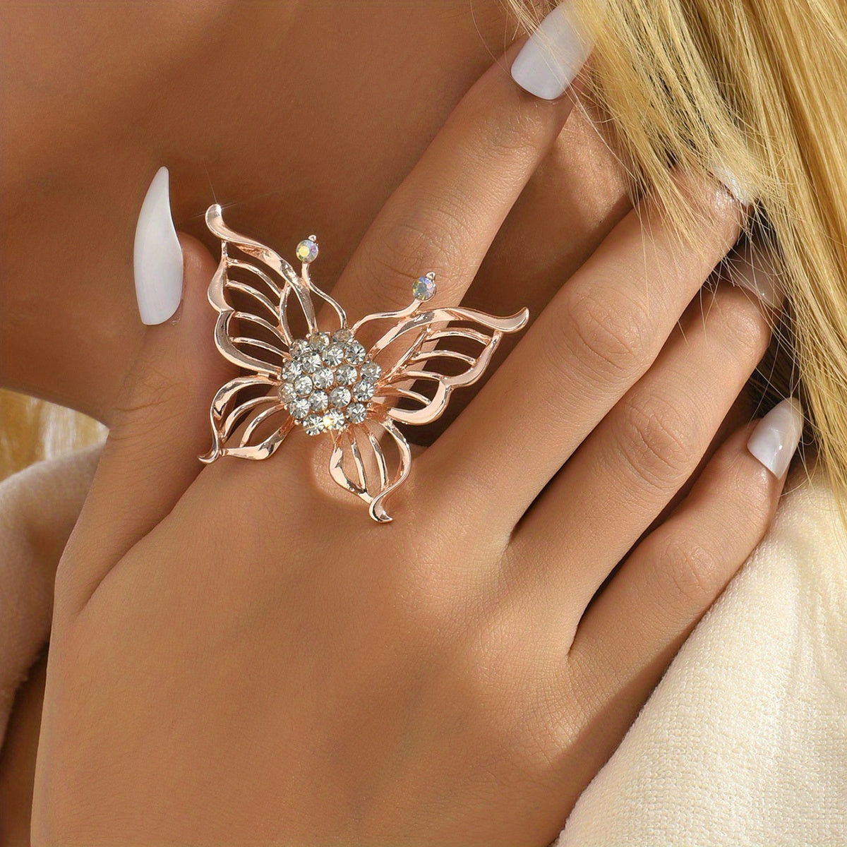 This butterfly ring with inlaid rhinestones is a perfect accessory to complement your daily outfits and add a touch of elegance to your summer vacation looks. It also makes a dainty birthday gift for the special girls in your life.