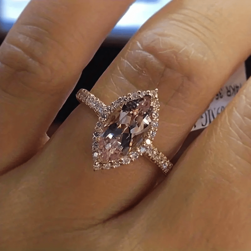 Elegant champagne gemstone ring adorned with sparkling rhinestones, perfect for adding a touch of glamour to any outfit.