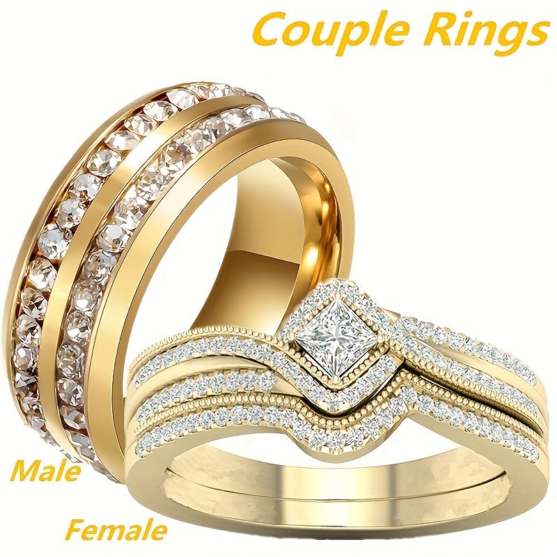 This couple ring features a beautiful zircon stone set in stainless steel, perfect for engagement or special occasions.