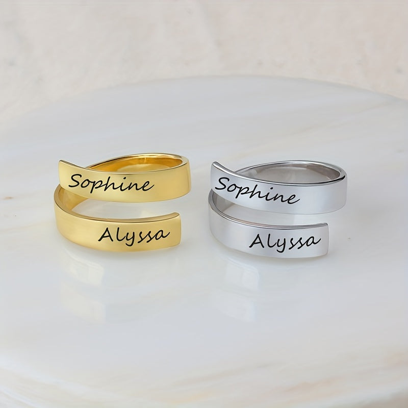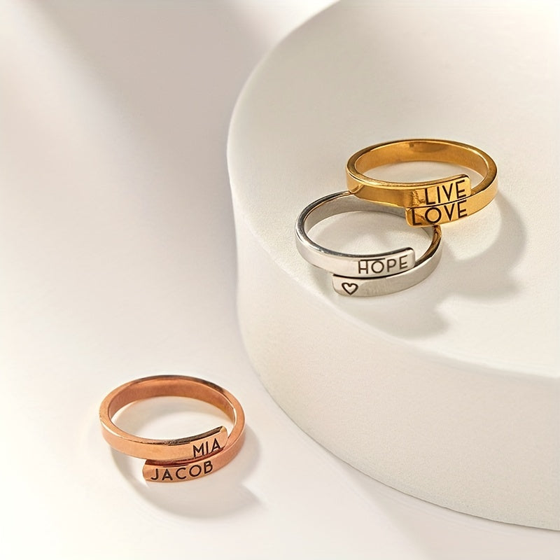 This personalized stainless steel ring is perfect for men and women. Easily adjustable to fit different finger sizes.