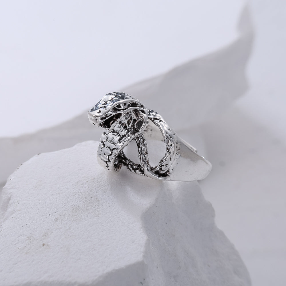 Embrace the dark punk style with this European and American men's open snake ring. Crafted with intricate details, this unique ring is a bold accessory for your edgy look.