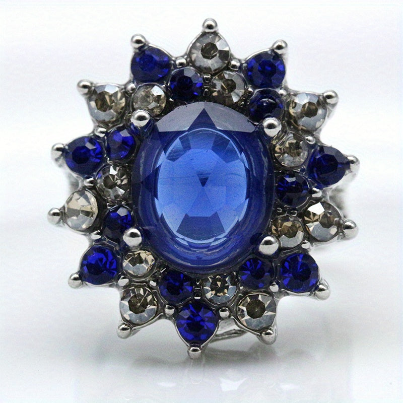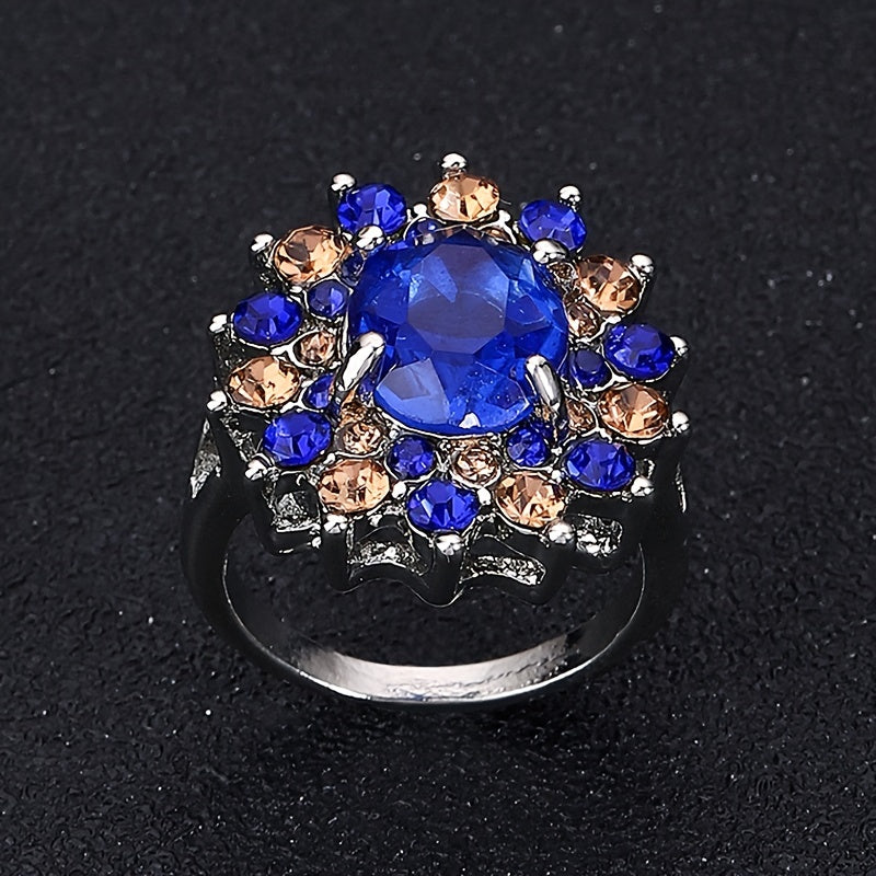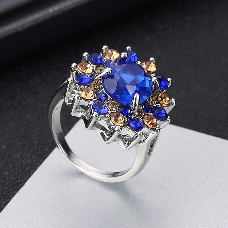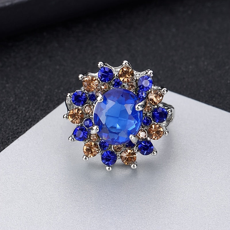 Add a touch of elegance to your outfit with this stunning gemstone rhinestone floral ring. Perfect for any occasion, this ring is a must-have for women's jewelry collection.