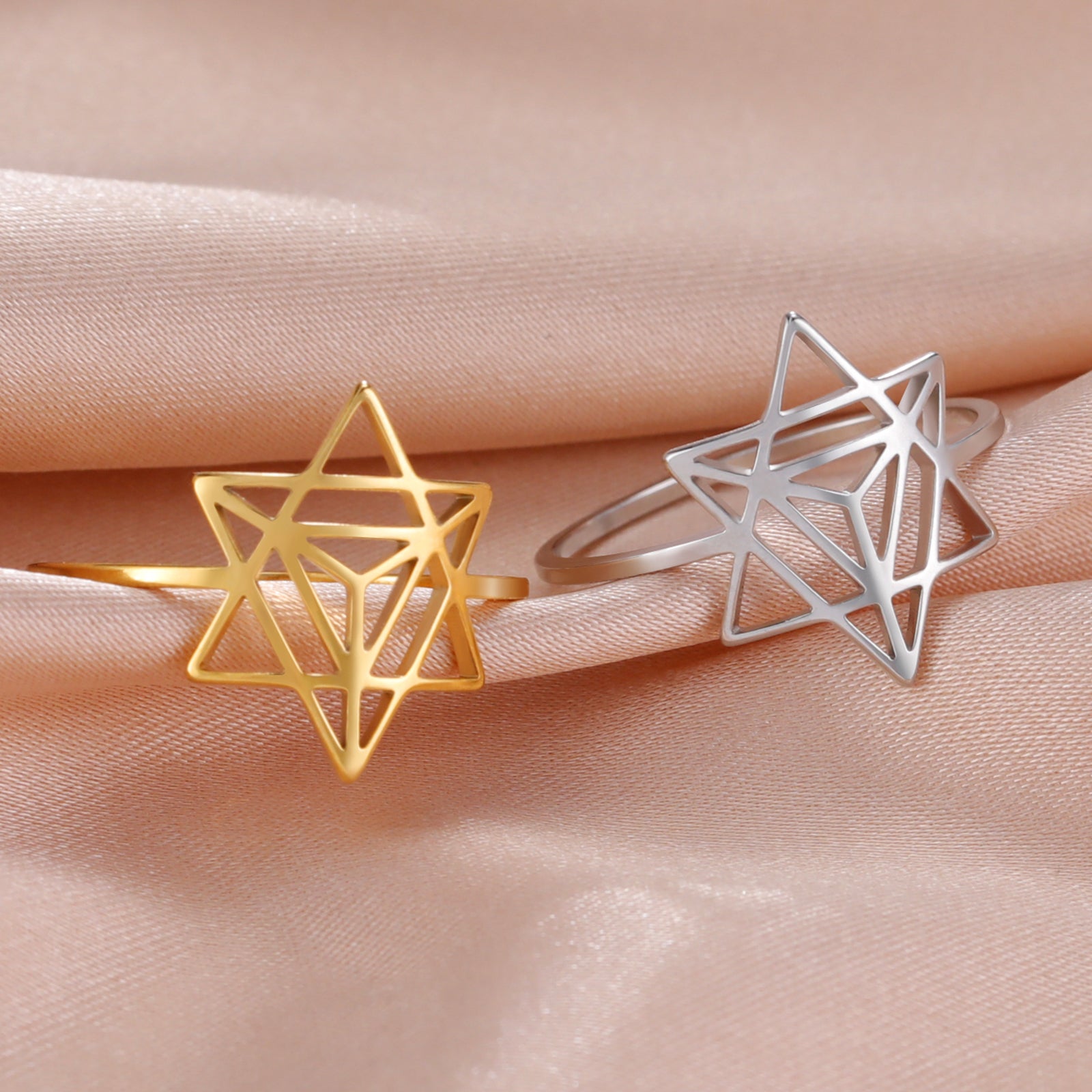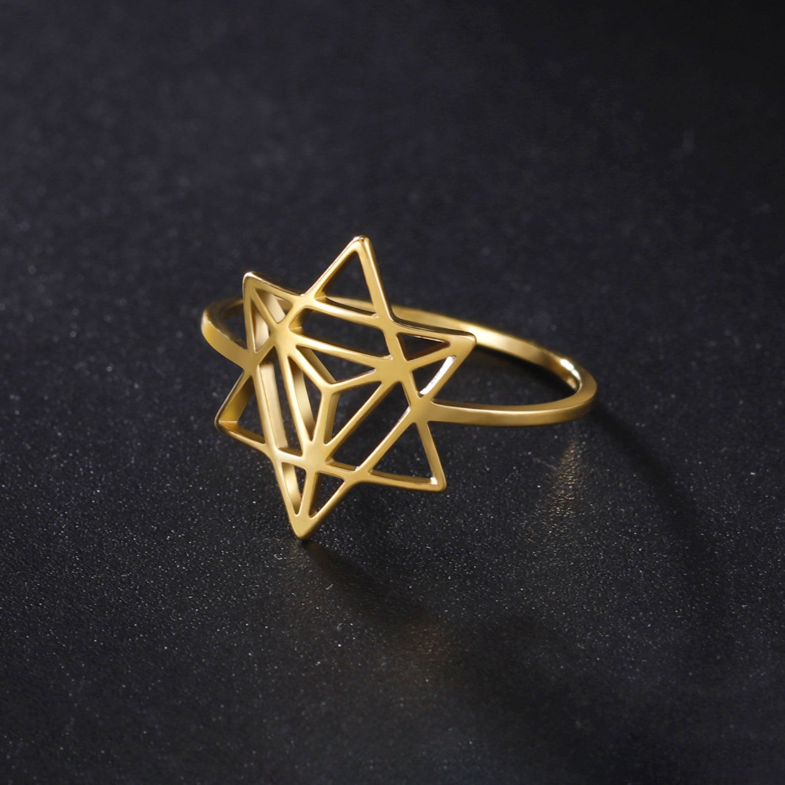 This versatile ring features a funky geometric design, making it a stylish choice for men. Crafted from durable stainless steel in a golden finish, this ring is perfect as a wedding band or for everyday wear. The unique design adds a touch of elegance to any outfit.