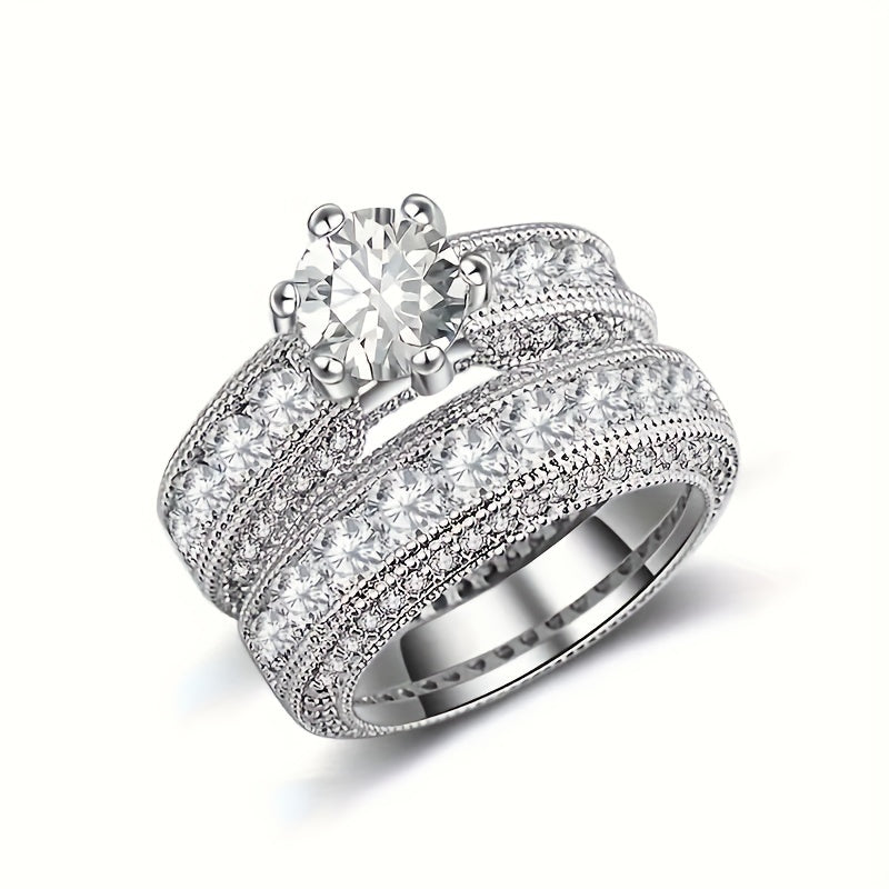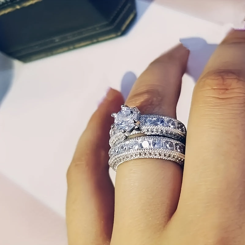 This 2-piece set of geometric rings is perfect for couples. Made with zircon stones, this set is an ideal gift for weddings, birthdays, or any special occasion.