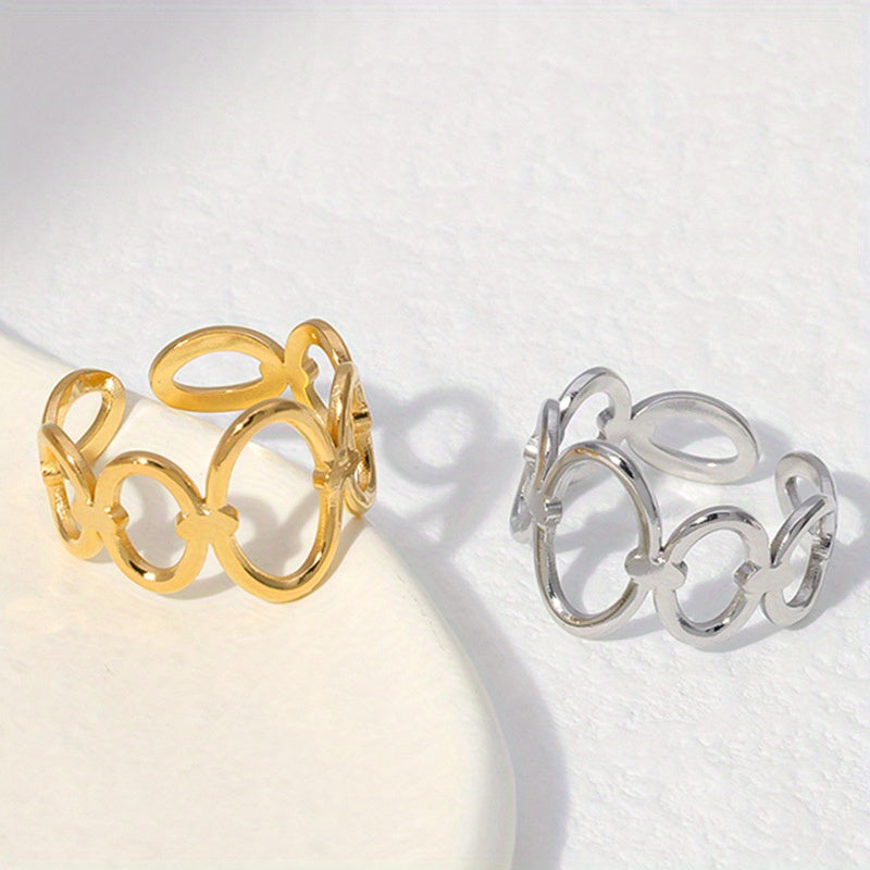 Golden Stainless Steel Men's Ring Adjustable Geometric Titanium Steel Ring