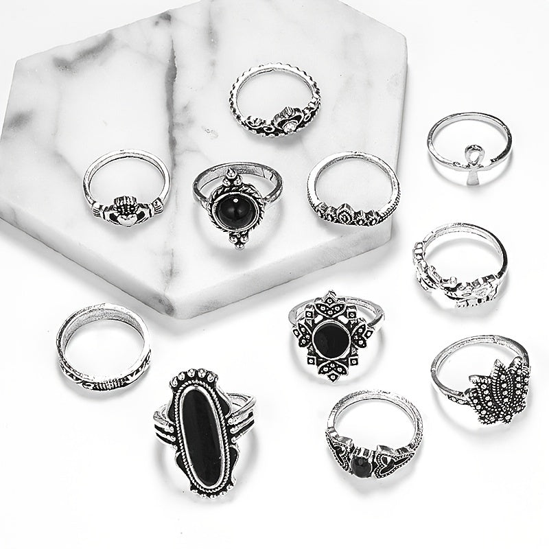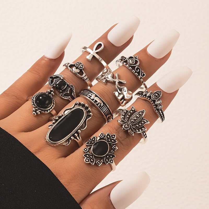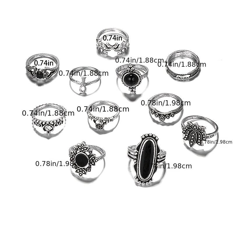 Elevate your style with this 11-piece ring set featuring gothic, gemstone, flower, love, and animal themes. Perfect for expressing your unique personality.
