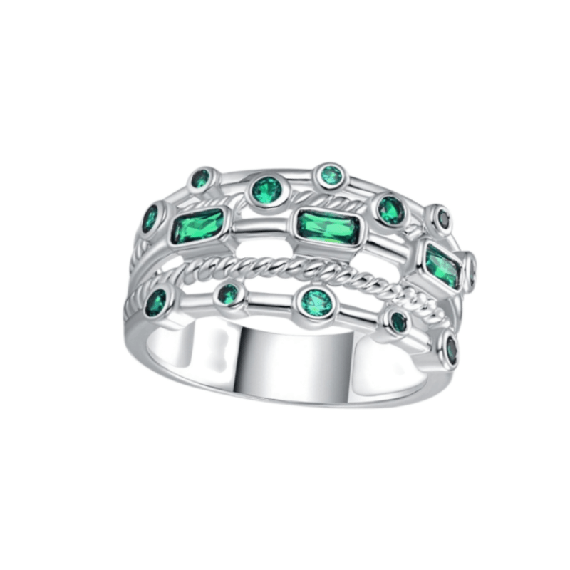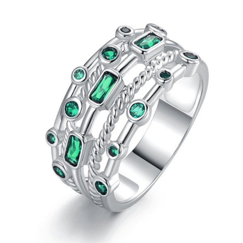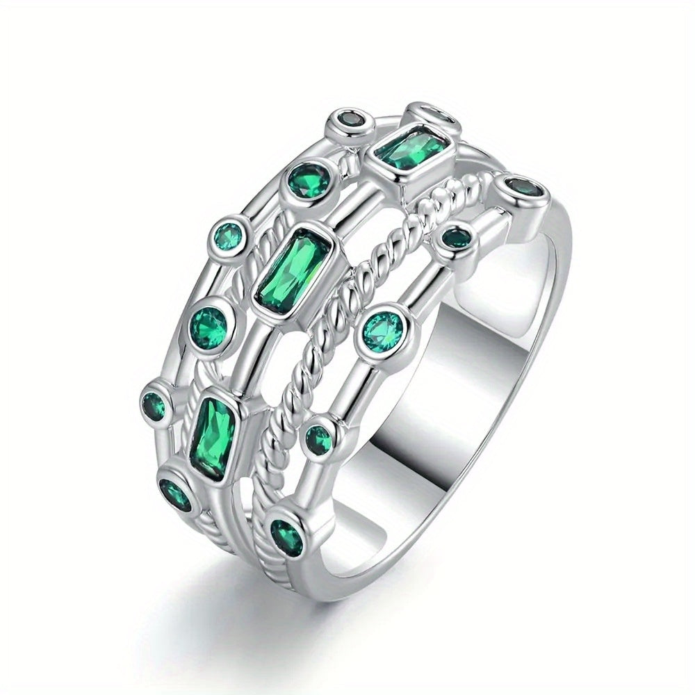 Add a touch of elegance to your outfit with this stunning ring featuring inlaid green rhinestones. Perfect for everyday wear or cocktail parties.