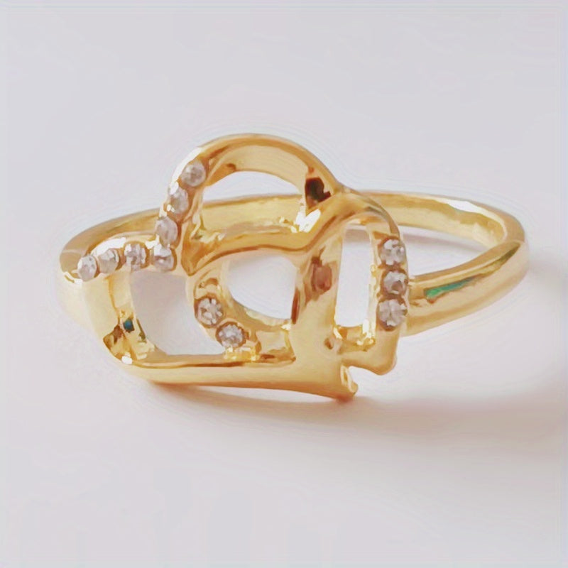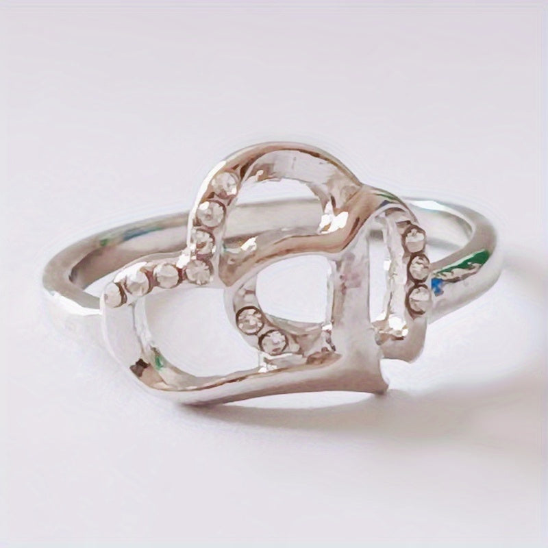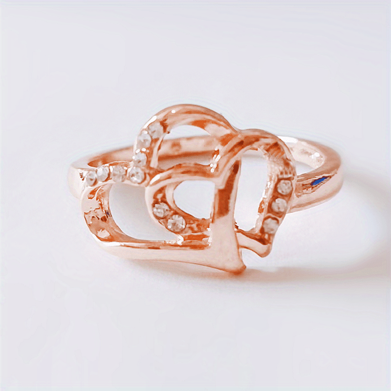 This double heart hollow love ring with artificial diamond is a perfect proposal jewelry gift for men and women.