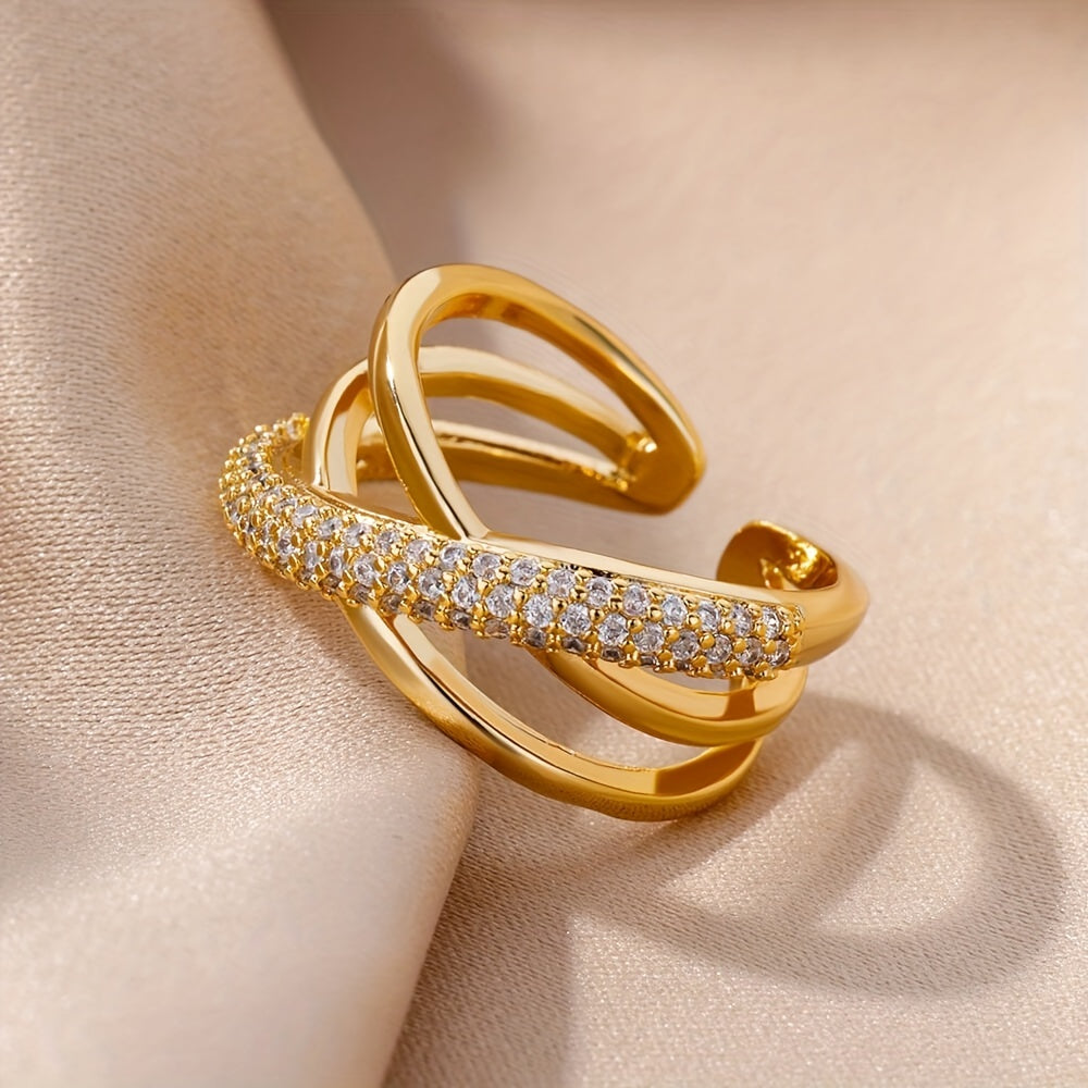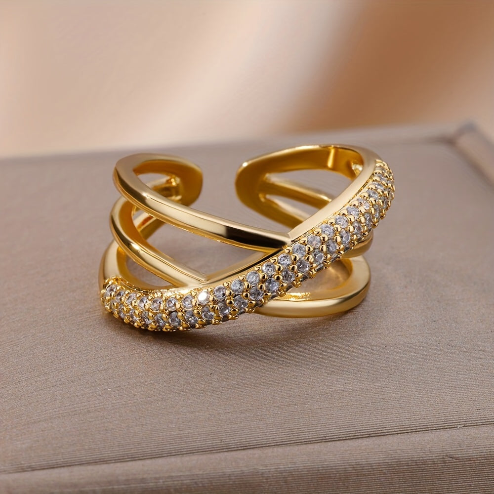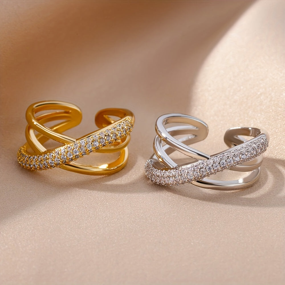 Add a touch of elegance to your look with this adjustable hollow cross shape cuff ring featuring stunning zircon inlay. Made from copper, this finger jewelry decor is perfect for any occasion.
