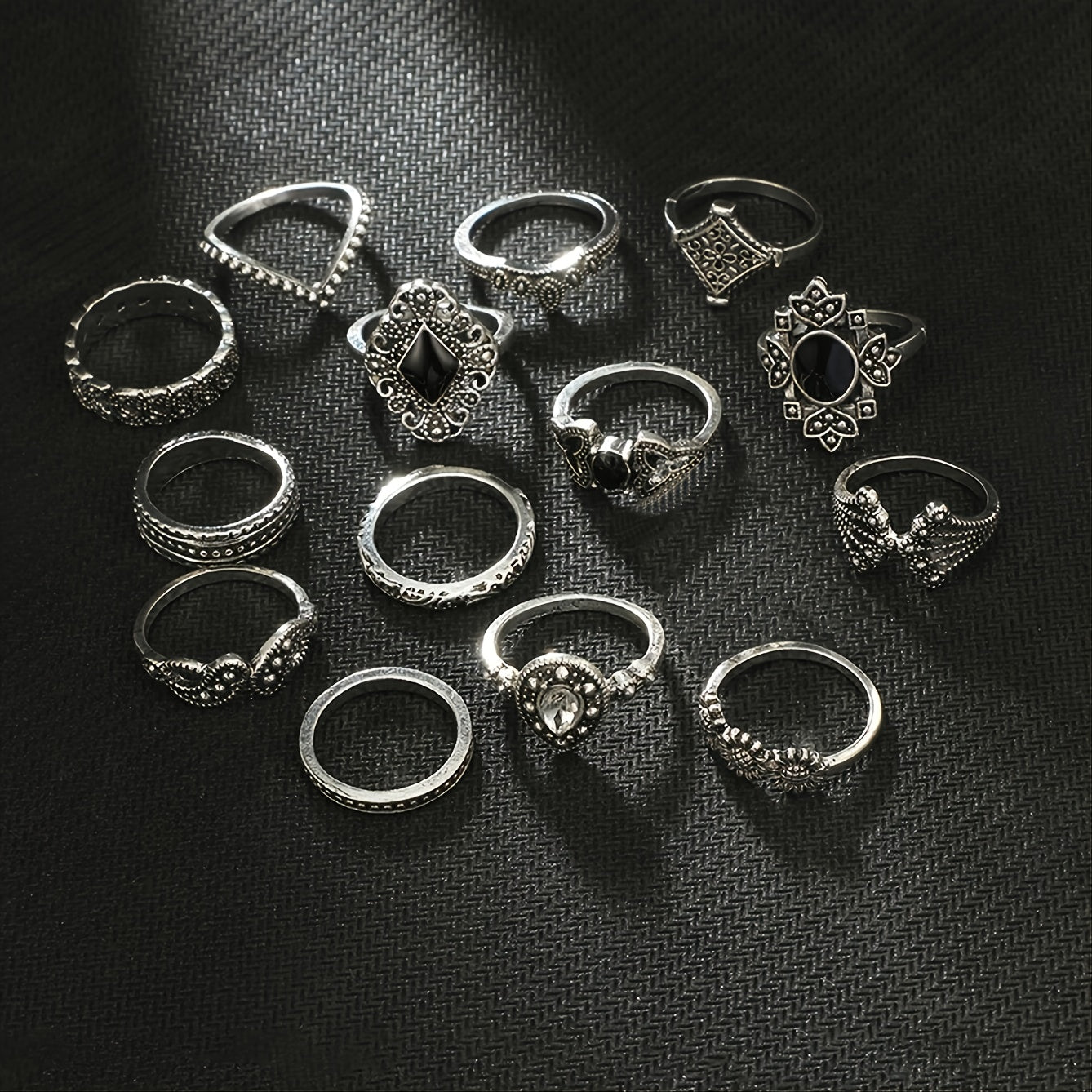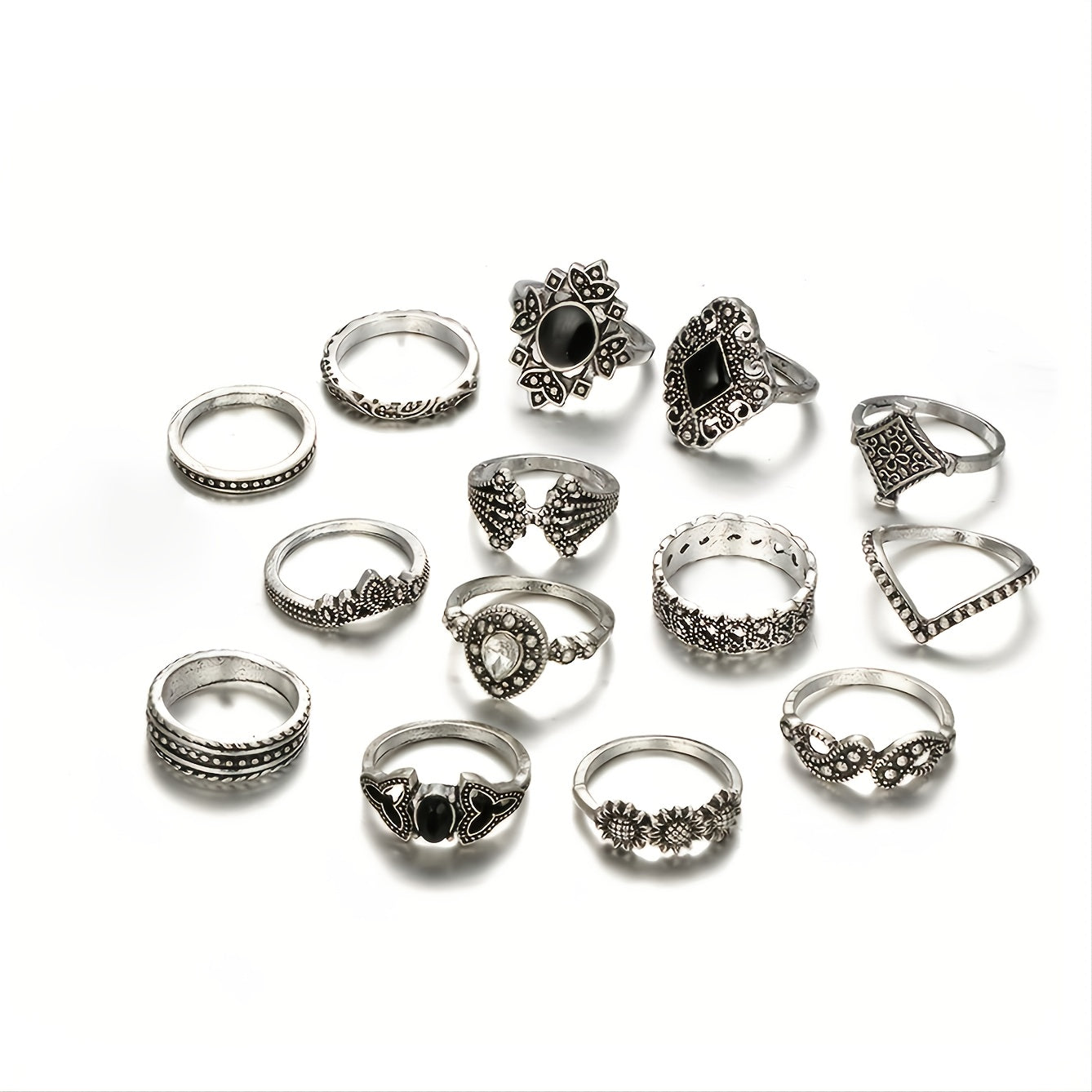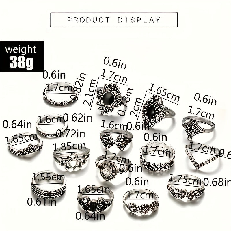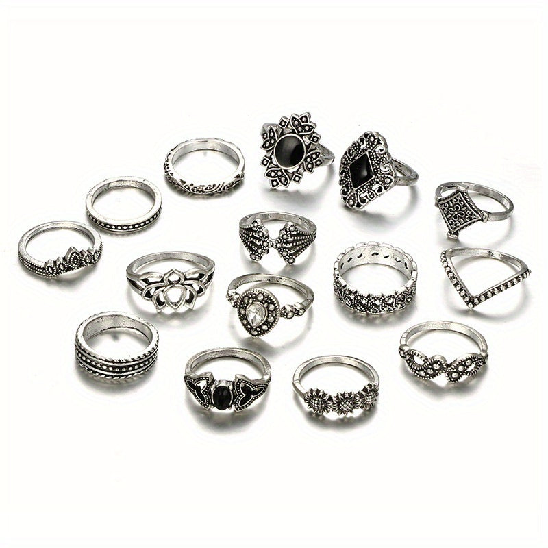 This 15-piece ring set features vintage lotus flower designs that are perfect for women and girls. Makes a great gift for any occasion.