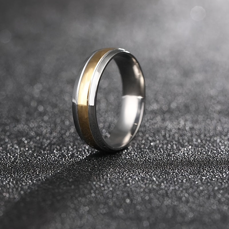 This casual stainless steel ring is perfect for weddings or everyday wear. The sleek design and durable material make it a versatile accessory.