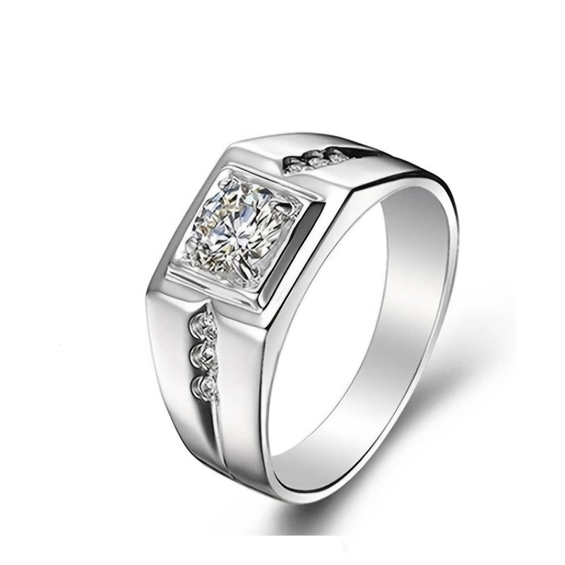 Elegant men's ring featuring a classic design in silver and black color combination.