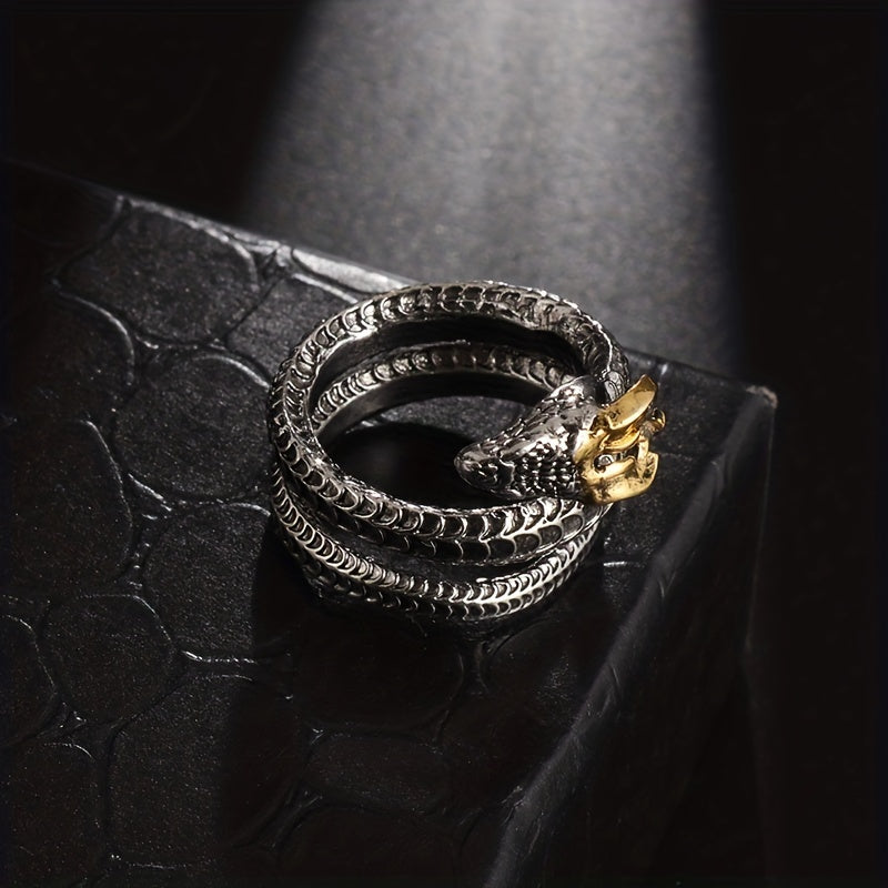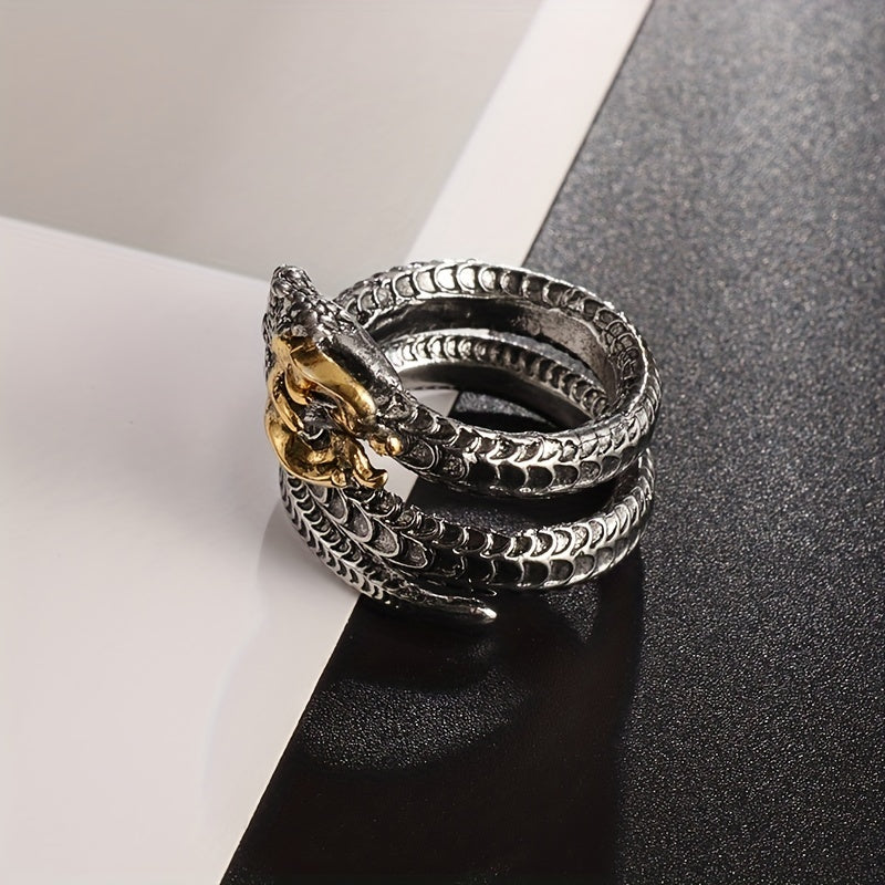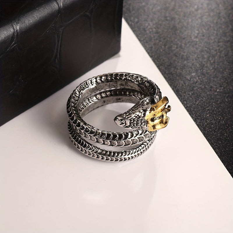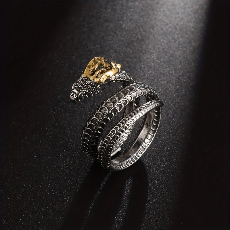 This domineering dragon ring is a perfect accessory for parties or daily wear. It features intricate dragon detailing and is adjustable to fit most sizes.