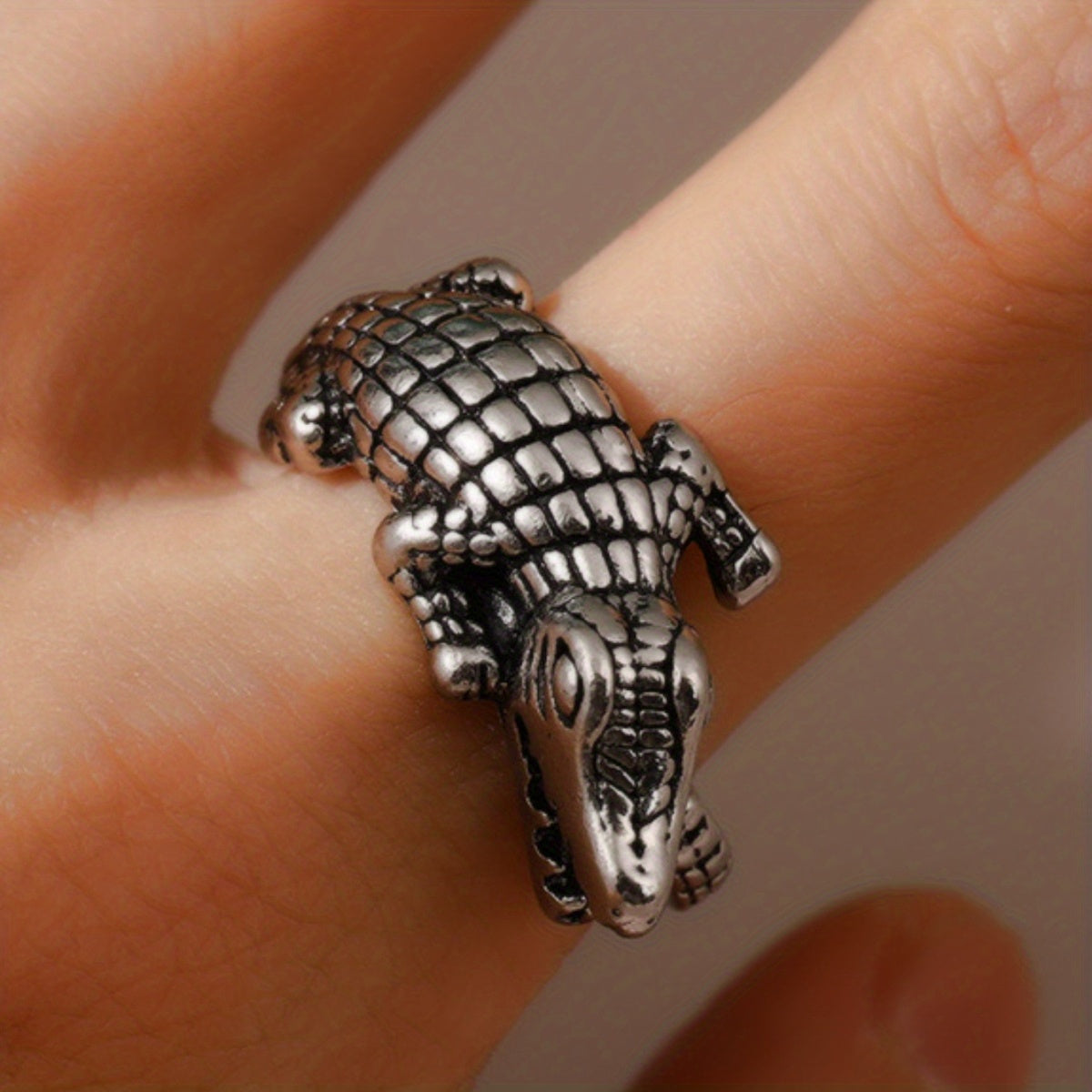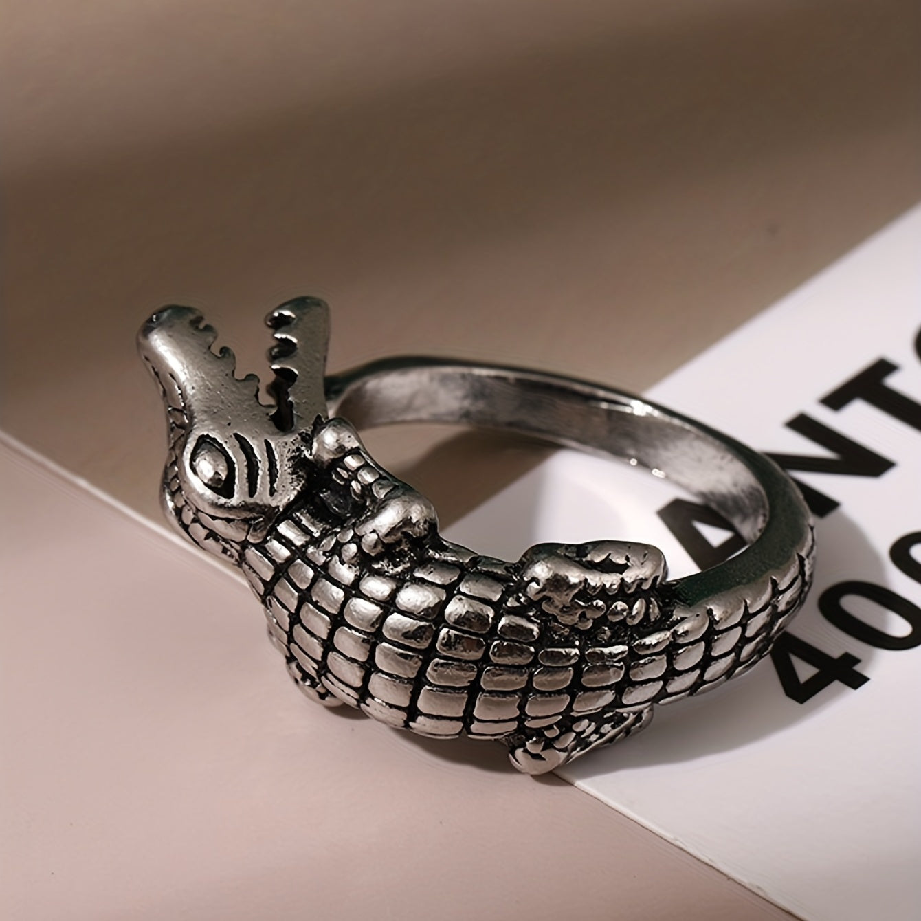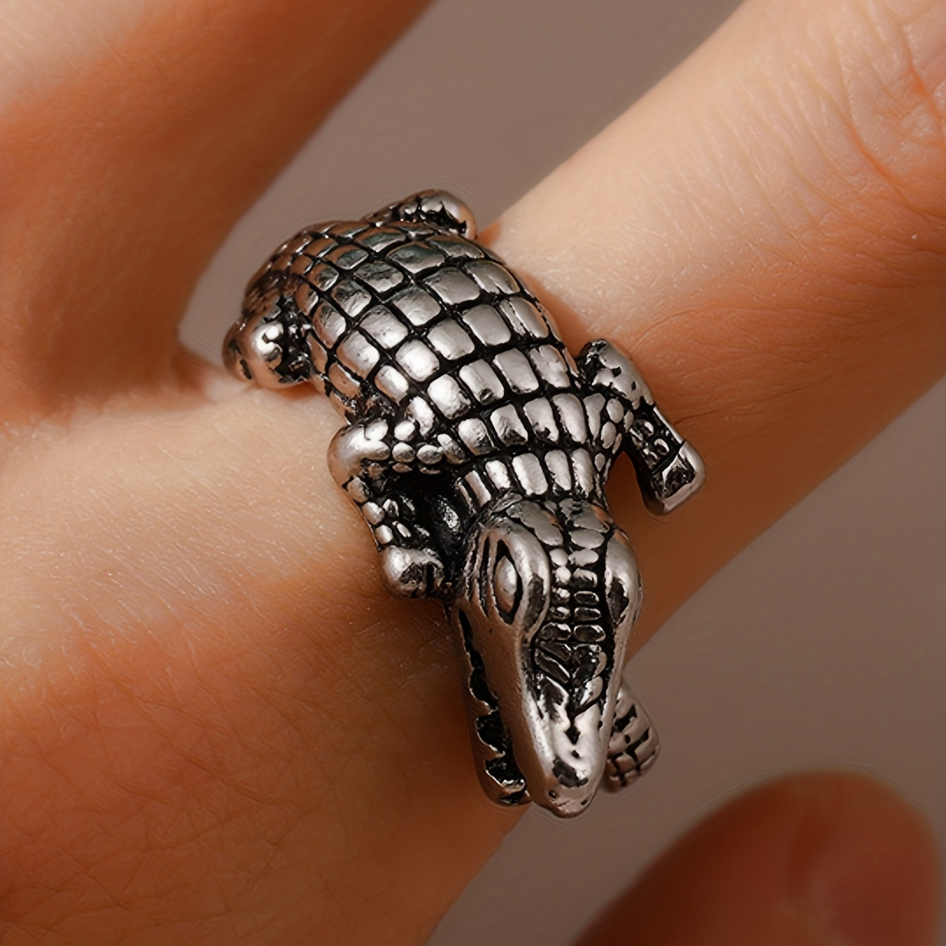 This unique ring features an exaggerated crocodile design, perfect for streetwear fashion.