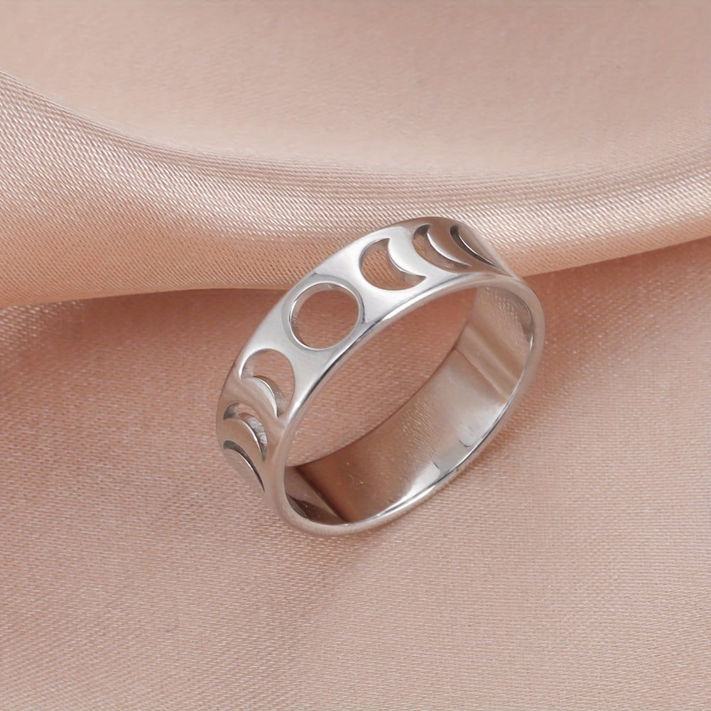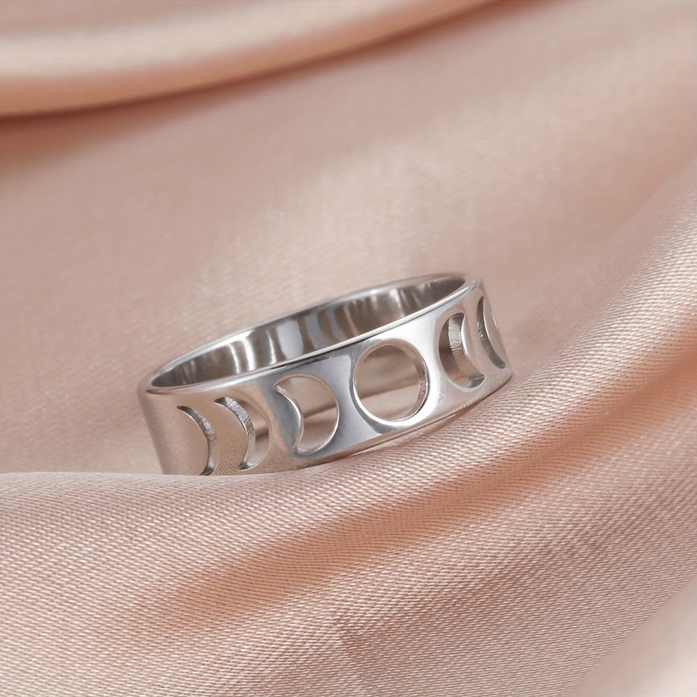 This stainless steel ring features a full moon crescent design, perfect for birthdays, weddings, and parties. A great gift for men.