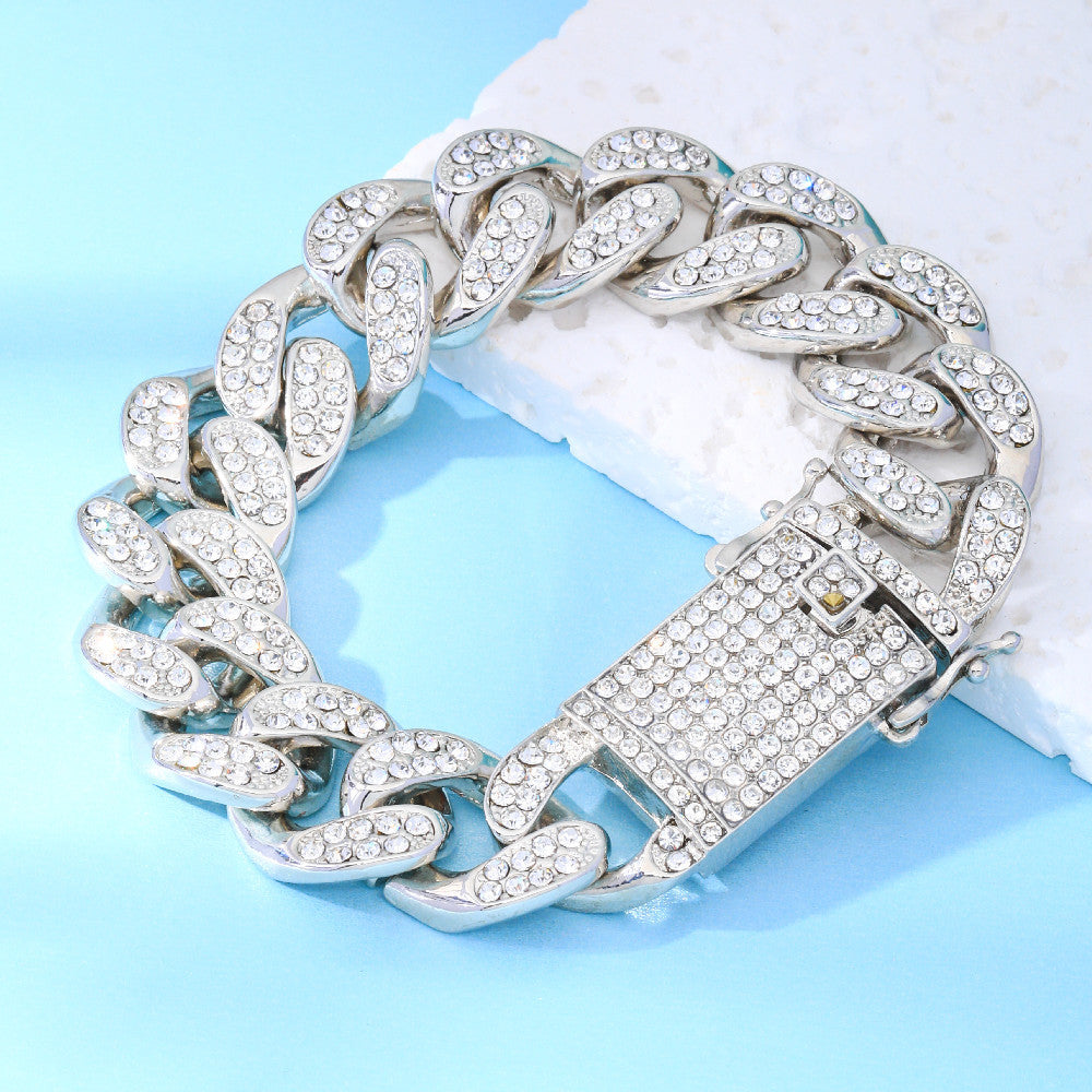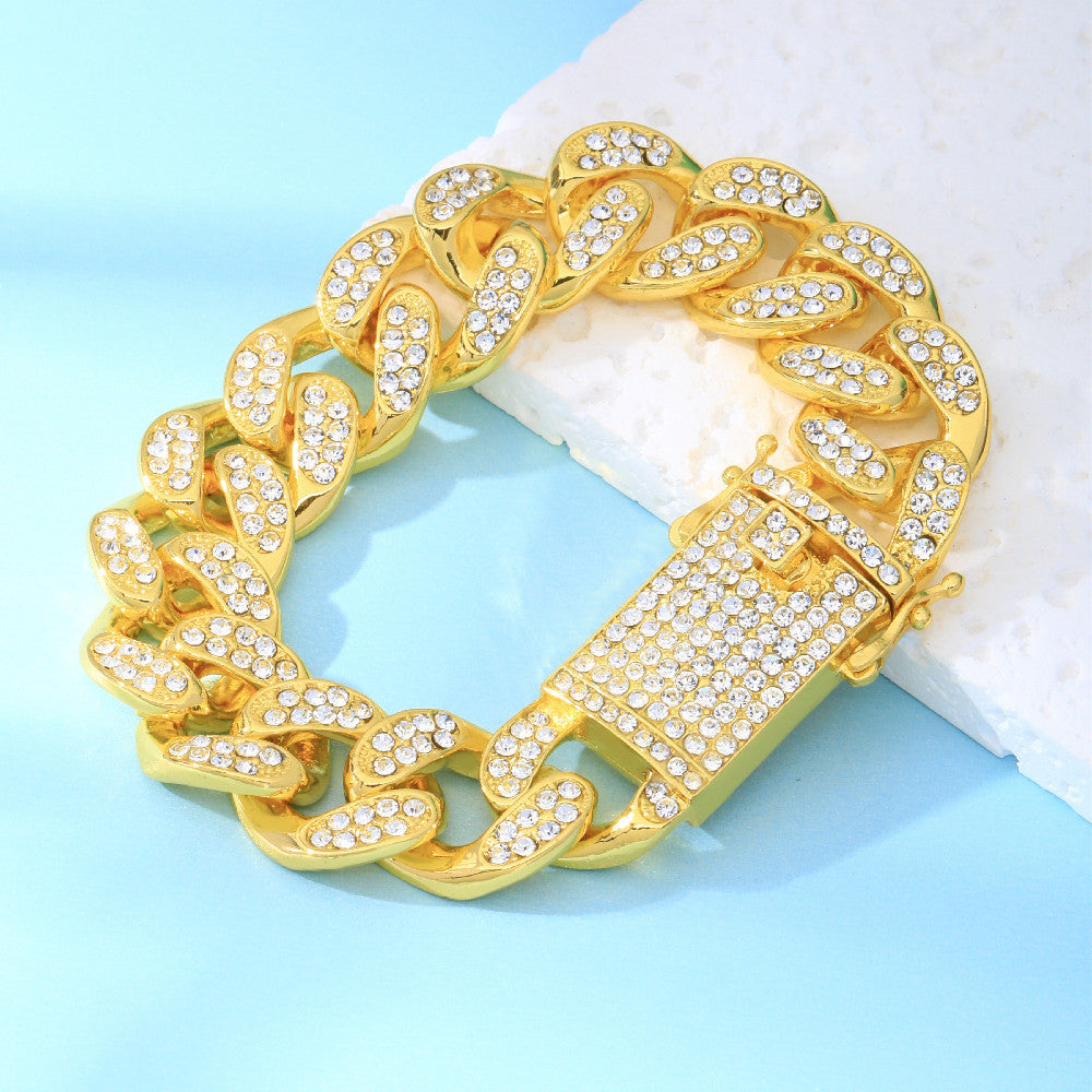 This European and American hip hop chain features a domineering and exaggerated style with faux diamonds. Perfect for a bold and stylish look.
