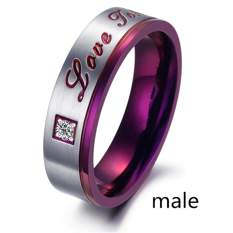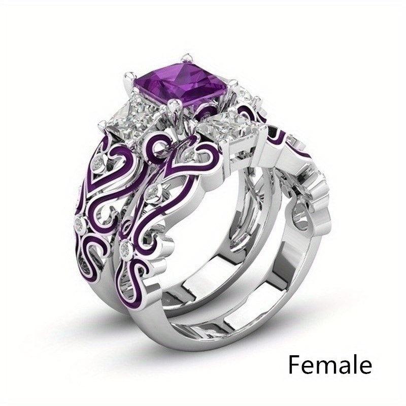 These stylish stainless steel rings are perfect for weddings and engagements. The purple design adds a unique touch to your special day.