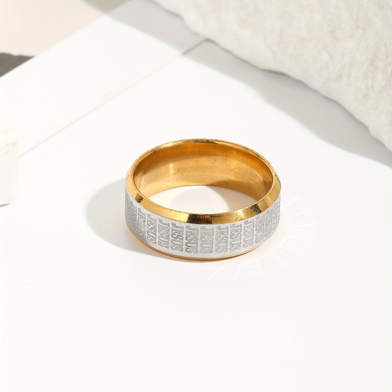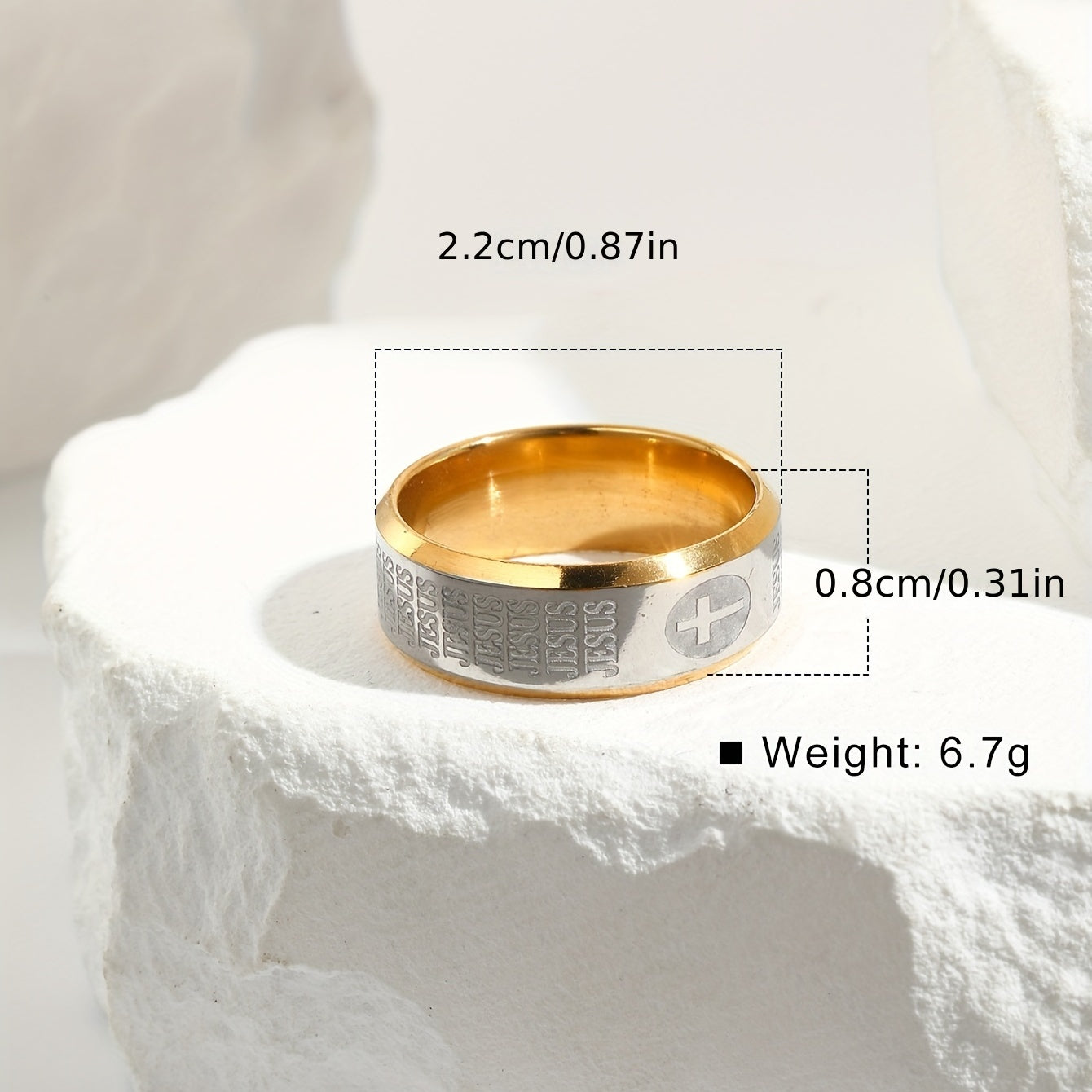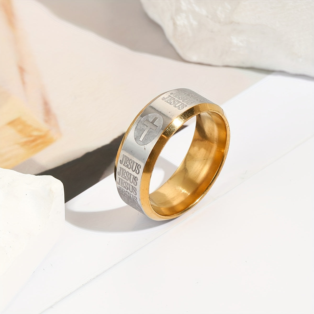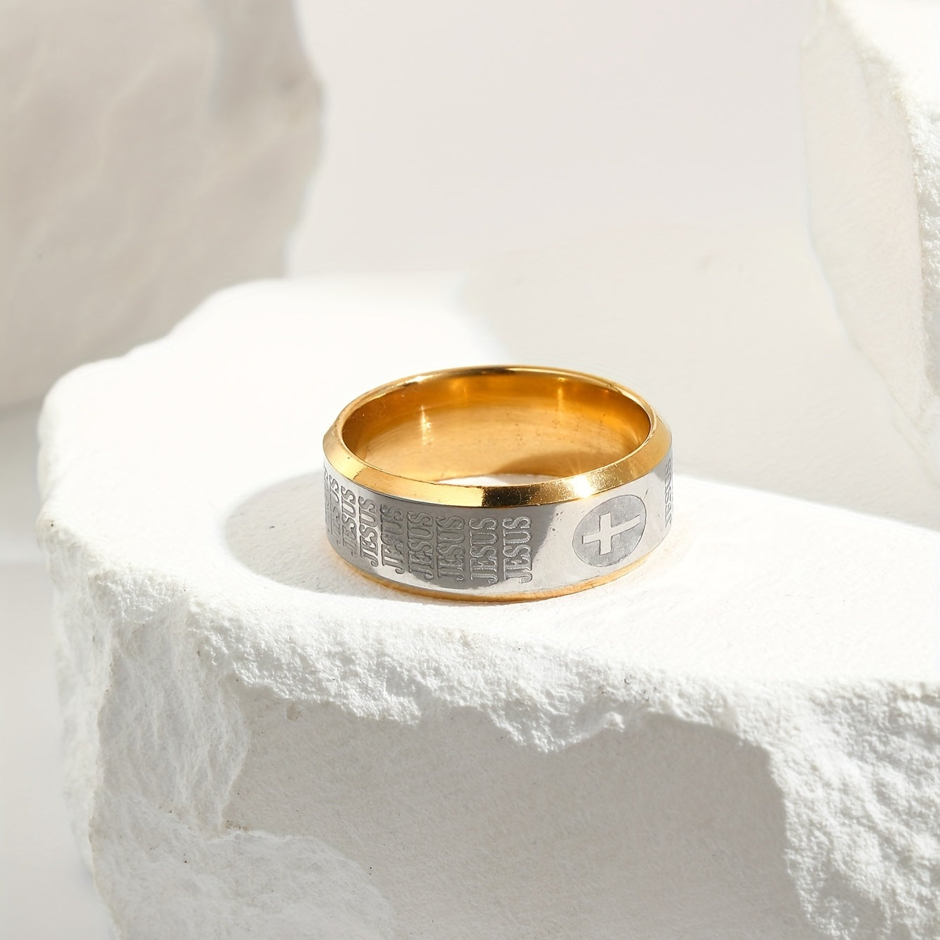 Elegant men's stainless steel ring with retro cross textured design.
