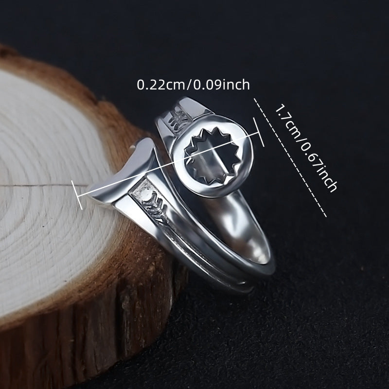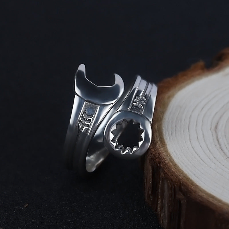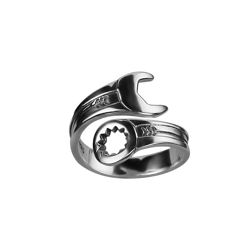 Add a touch of vintage style with this silvery wrench pattern ring for men.