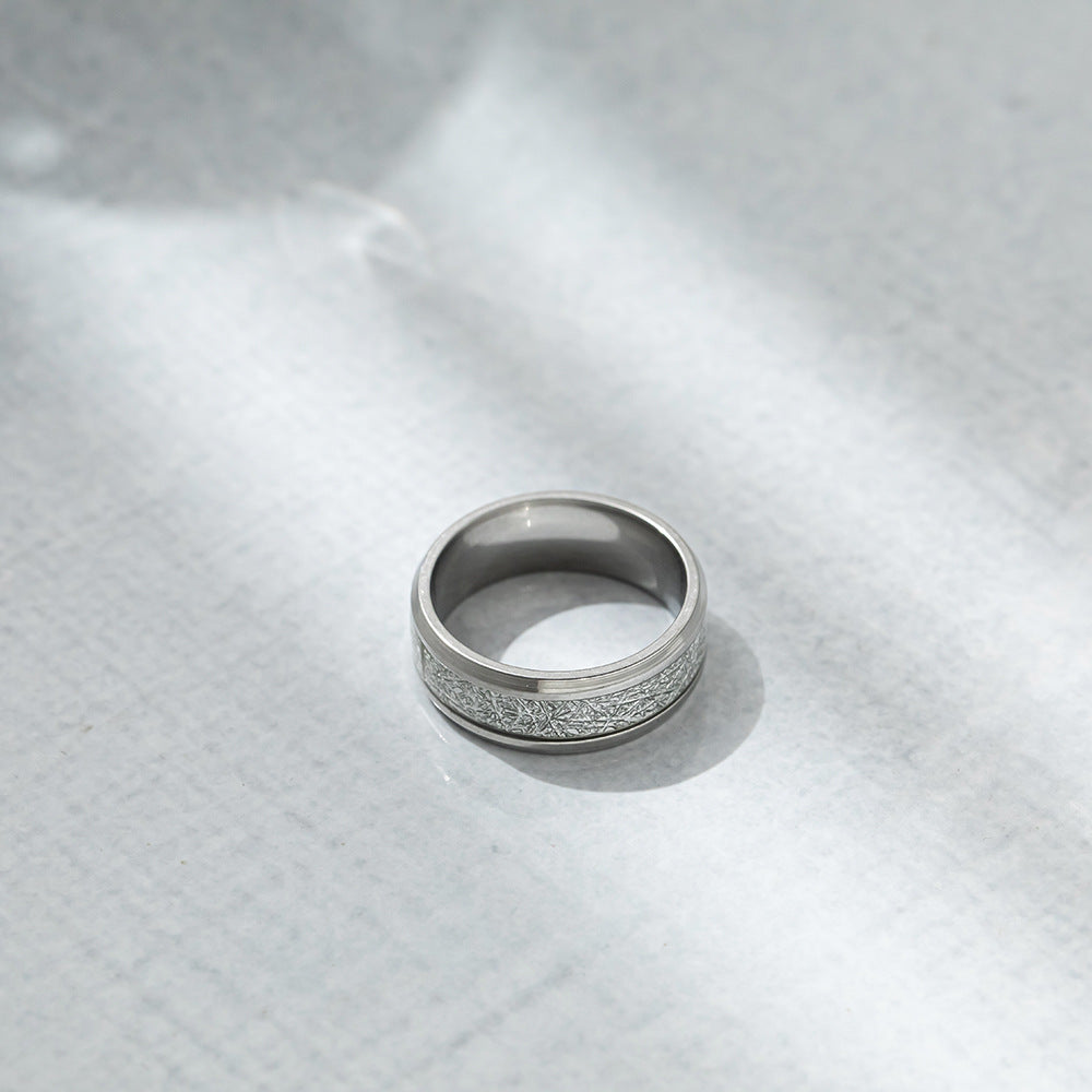 Elegant and stylish men's ring featuring a unique rime pattern design. Made of high-quality stainless steel with an epoxy finish. Perfect for everyday wear or special occasions.