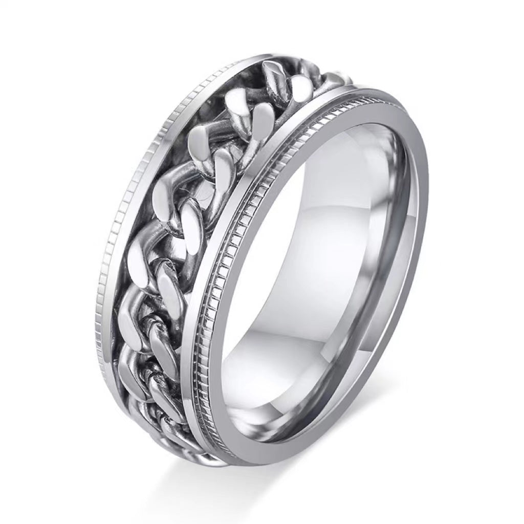 This unique men's ring features a rotating chain design that allows you to open bottles. Crafted with high-quality materials, this ring is both stylish and functional.