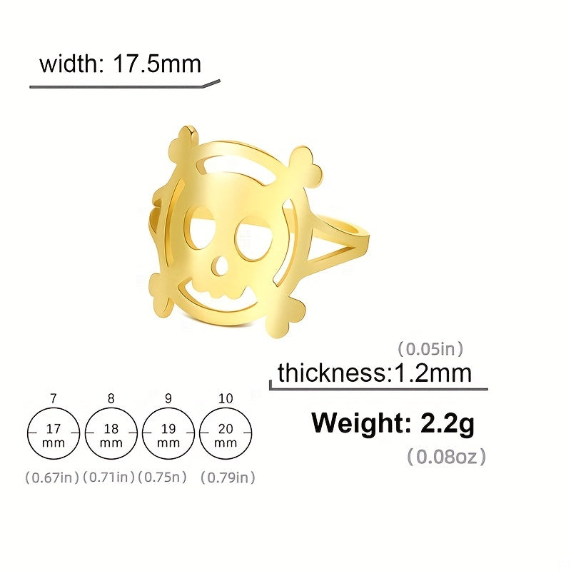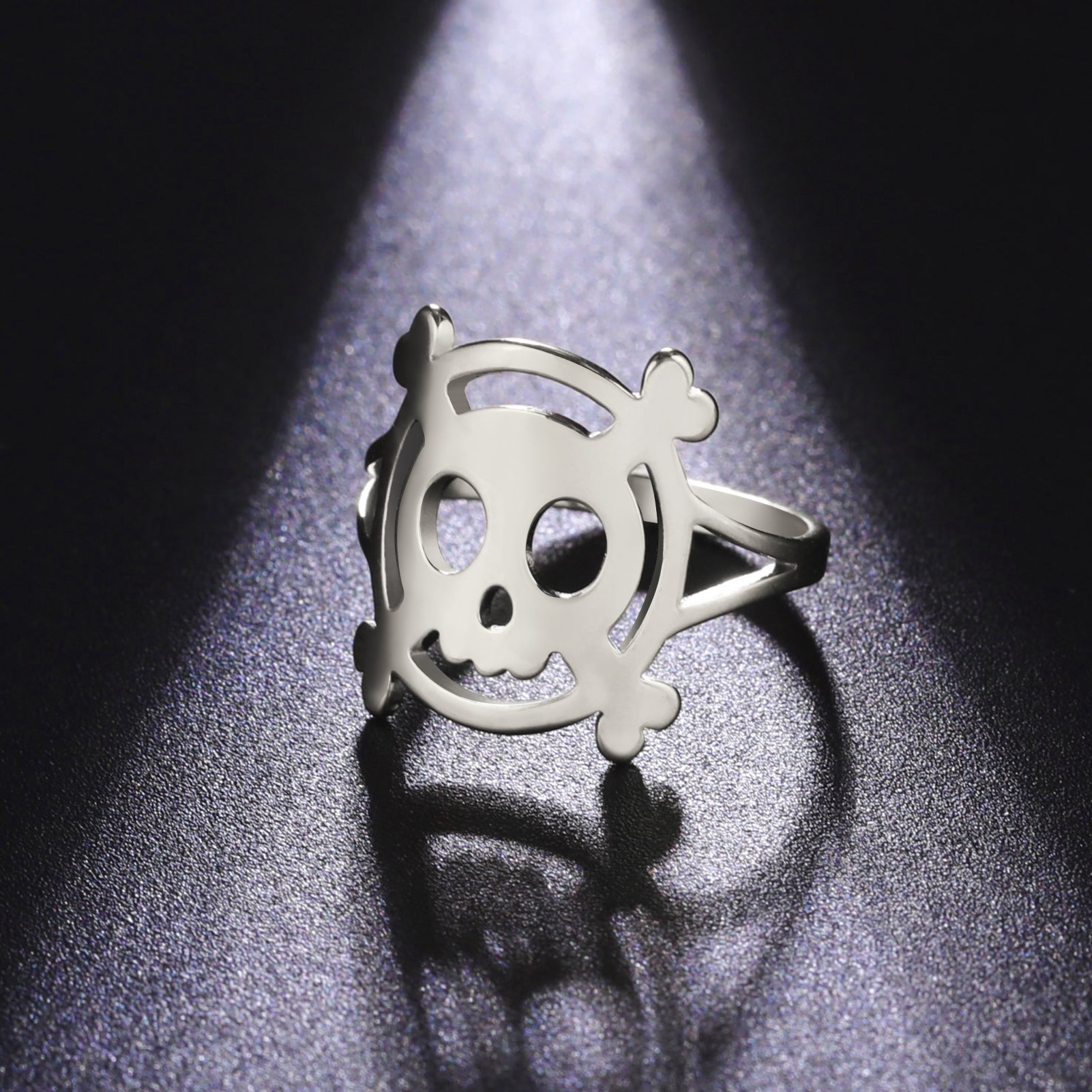 Add a touch of punk style to your outfit with this cool skull ring. Made of high-quality stainless steel, this ring features a detailed skull and crossbones design, perfect for Halloween or any party. Makes a great gift for any guy who loves edgy accessories.