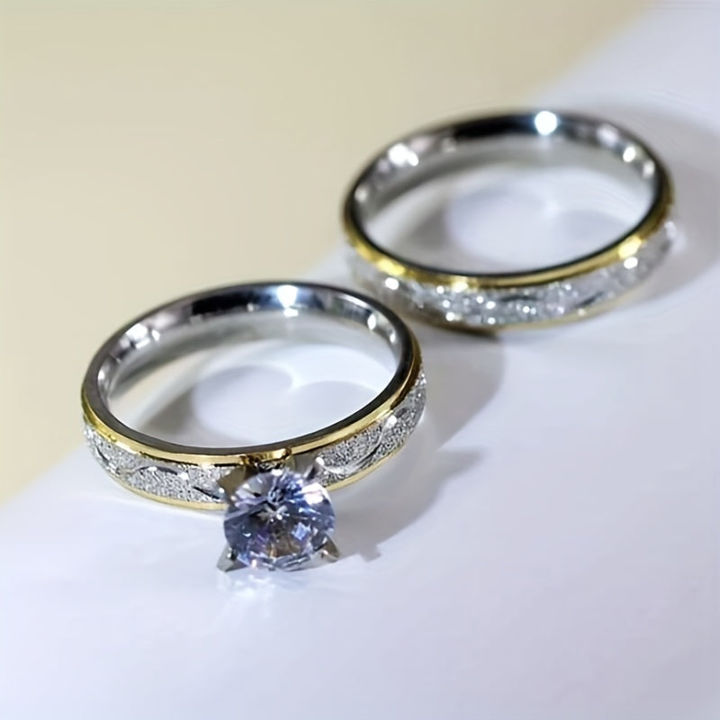 This set of couples rings is made of high-quality stainless steel with a titanium finish. Perfect gift for men and women symbolizing true love that never fades.