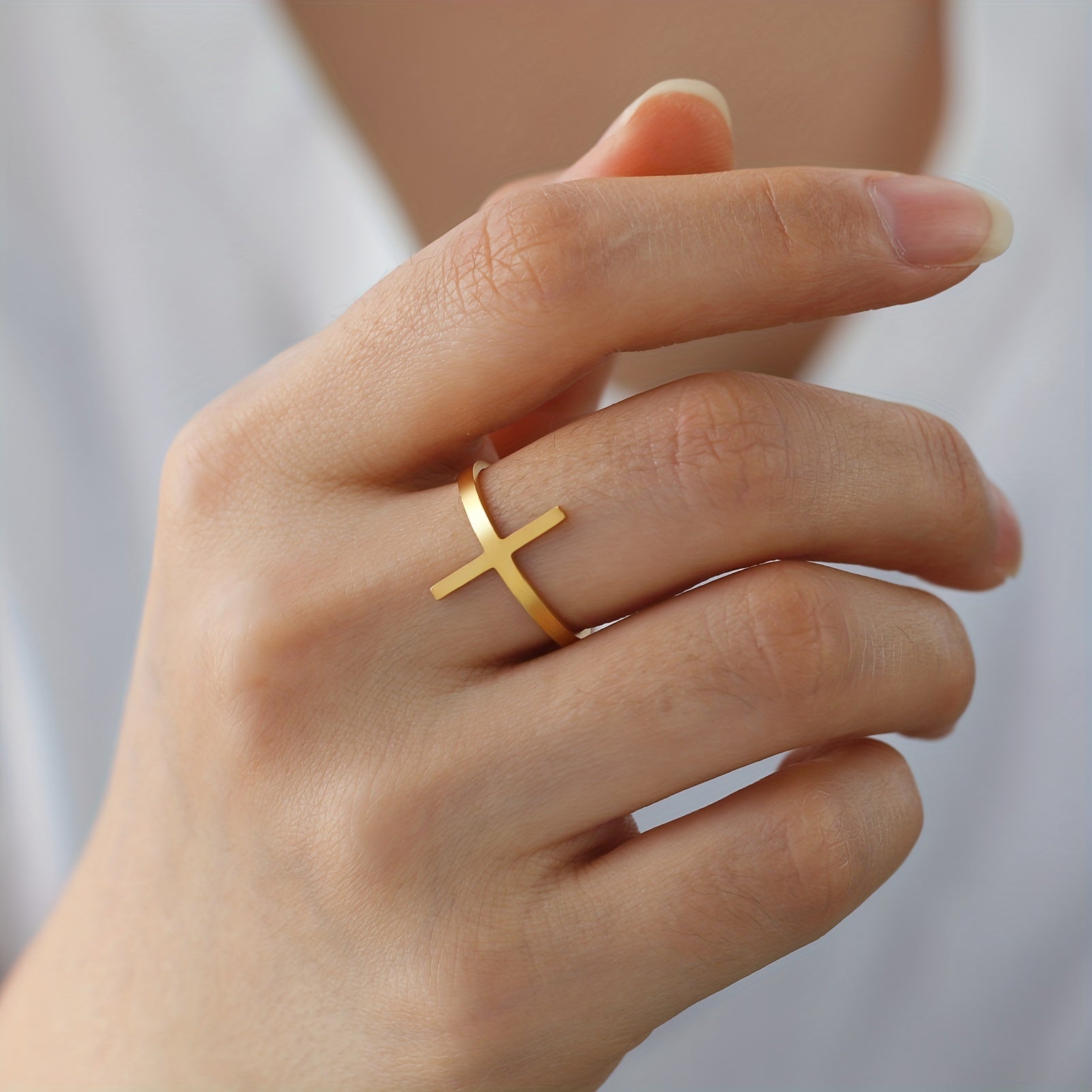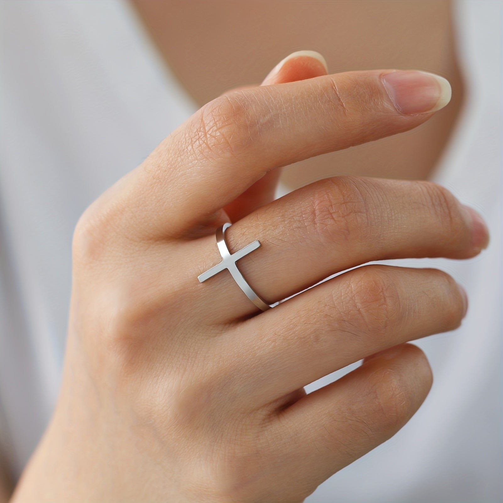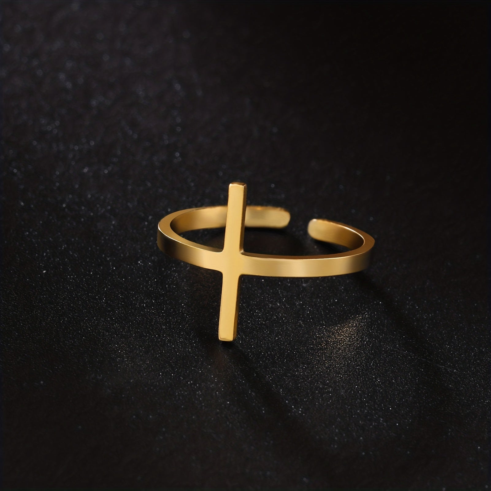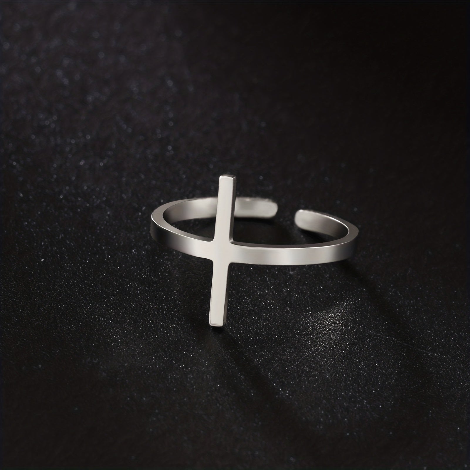 This stainless steel ring features a cross design, making it a unique amulet for couples. It is a stylish and meaningful accessory for everyday wear.