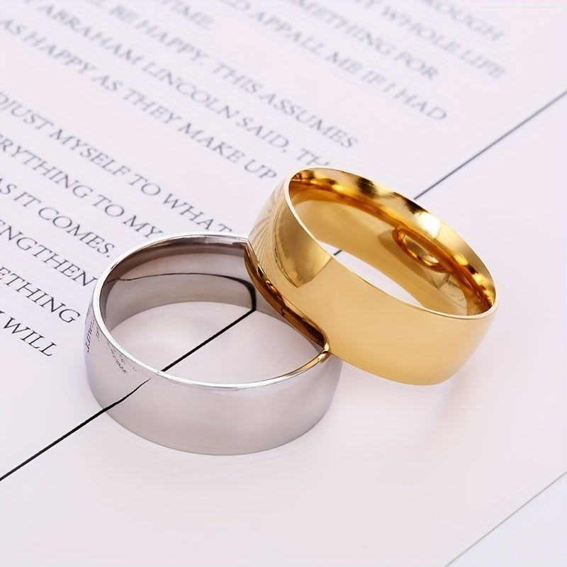 This minimalist ring is crafted from stainless steel with a glossy finish, perfect for couples.