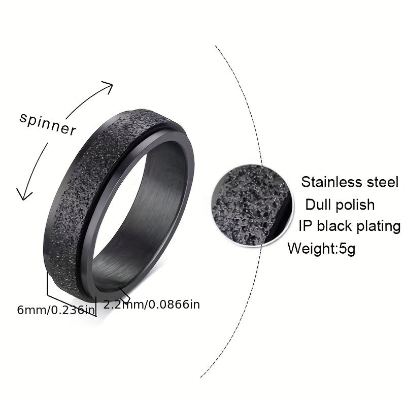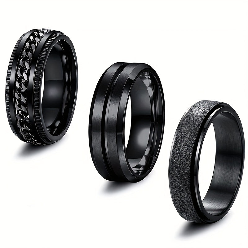 This 3-piece ring set is perfect for daily wear, dating, or as a unique birthday gift. Made of high-quality stainless steel, each ring features a frosted design and rotating element for added style.