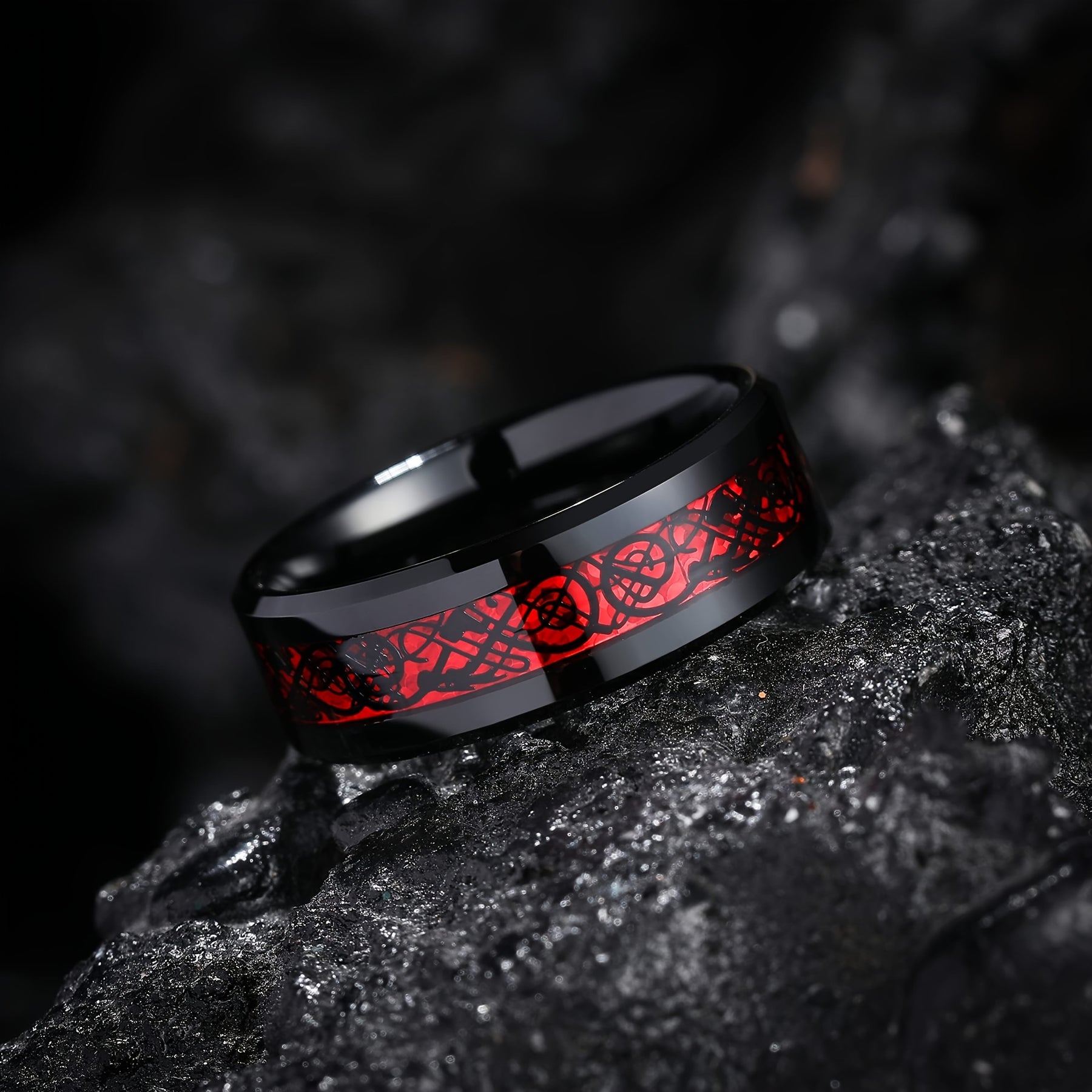 This men's ring features a dragon pattern in red and golden tones. Made from durable titanium steel for long-lasting wear.