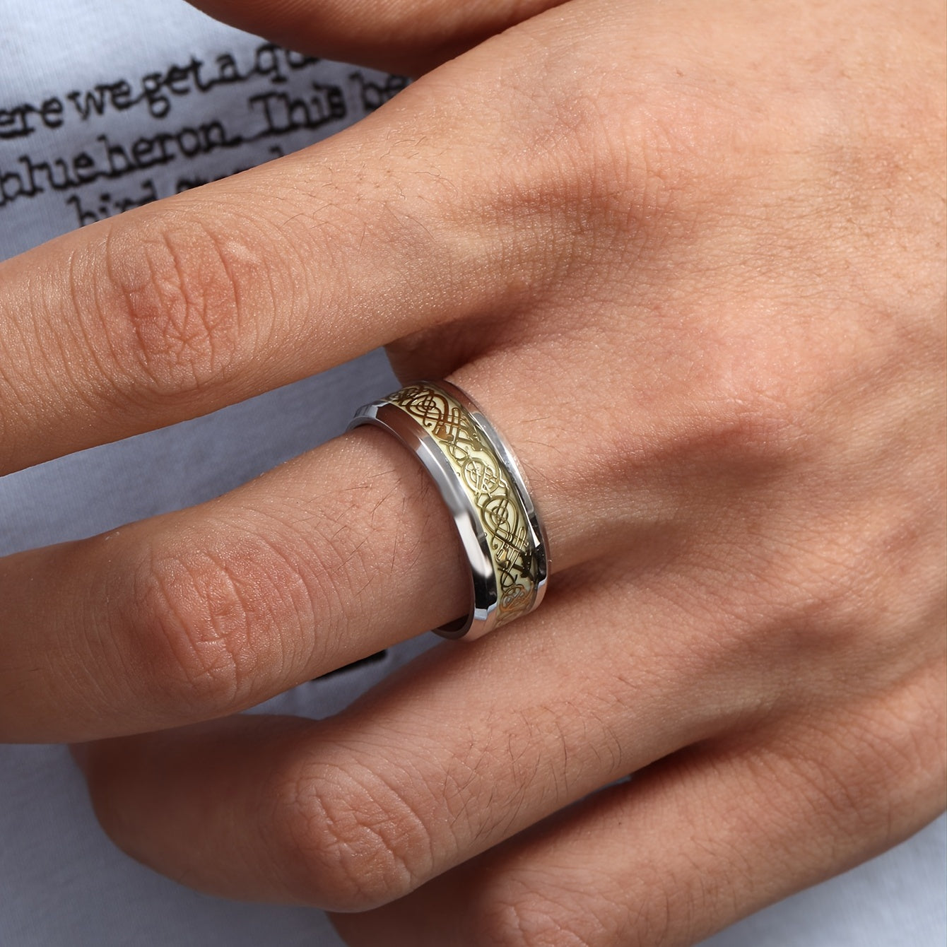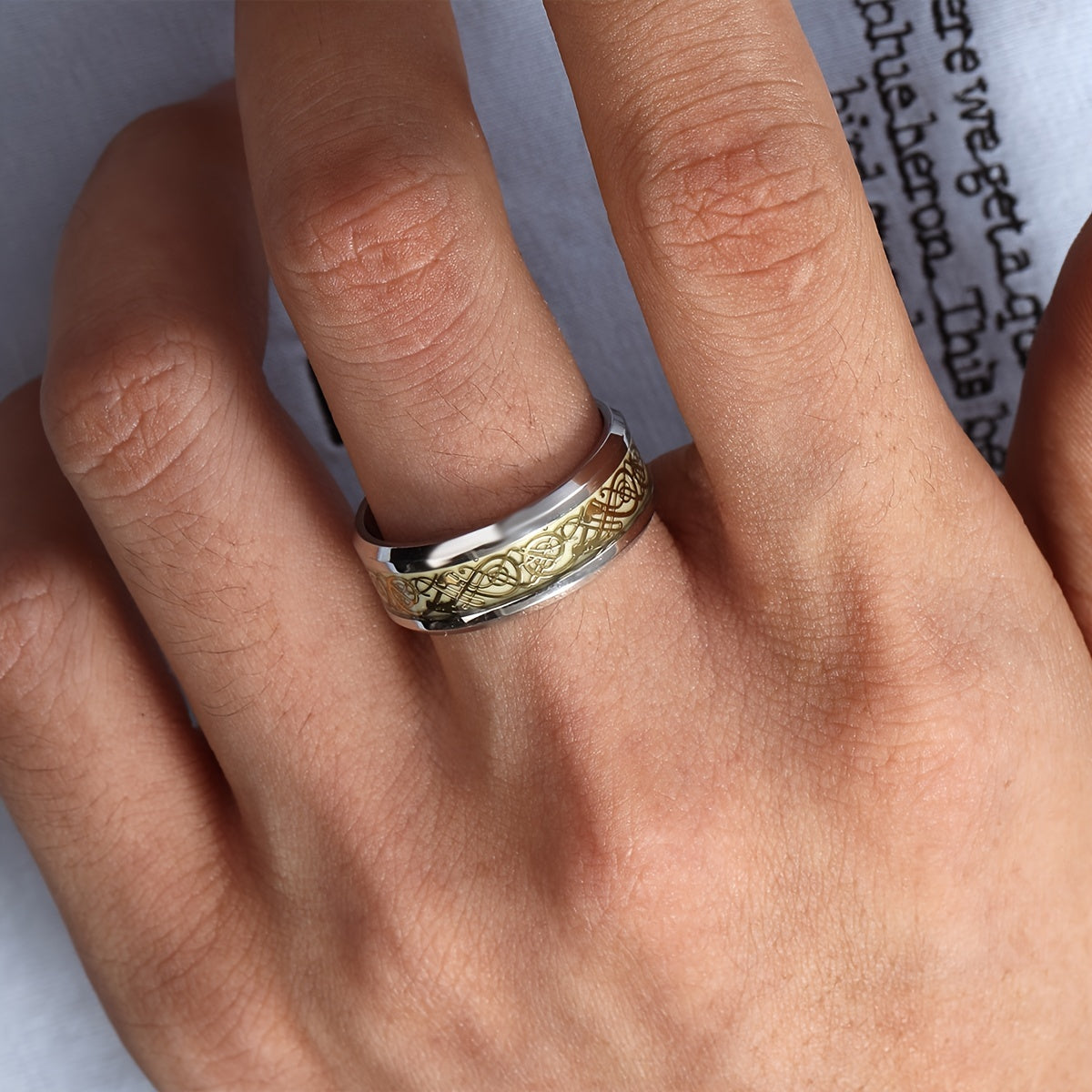 Stand out with this unique titanium steel ring featuring a luminous dragon pattern. Perfect for casual wear with a touch of creativity.