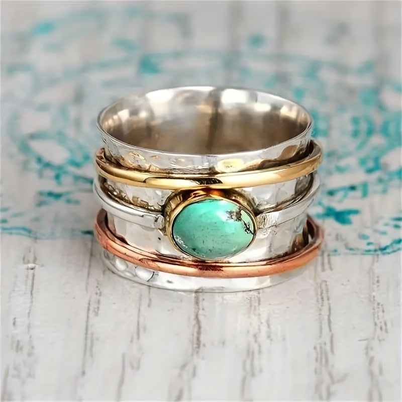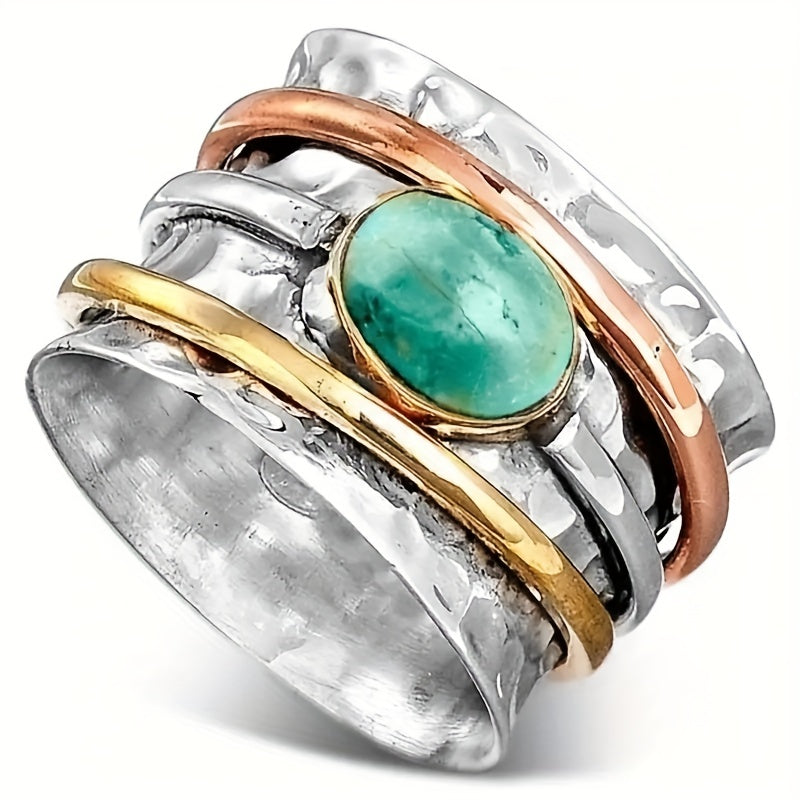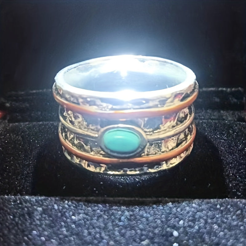 Vintage turquoise inlaid ring with a retro bohemian vibe, perfect for men's accessory collection.