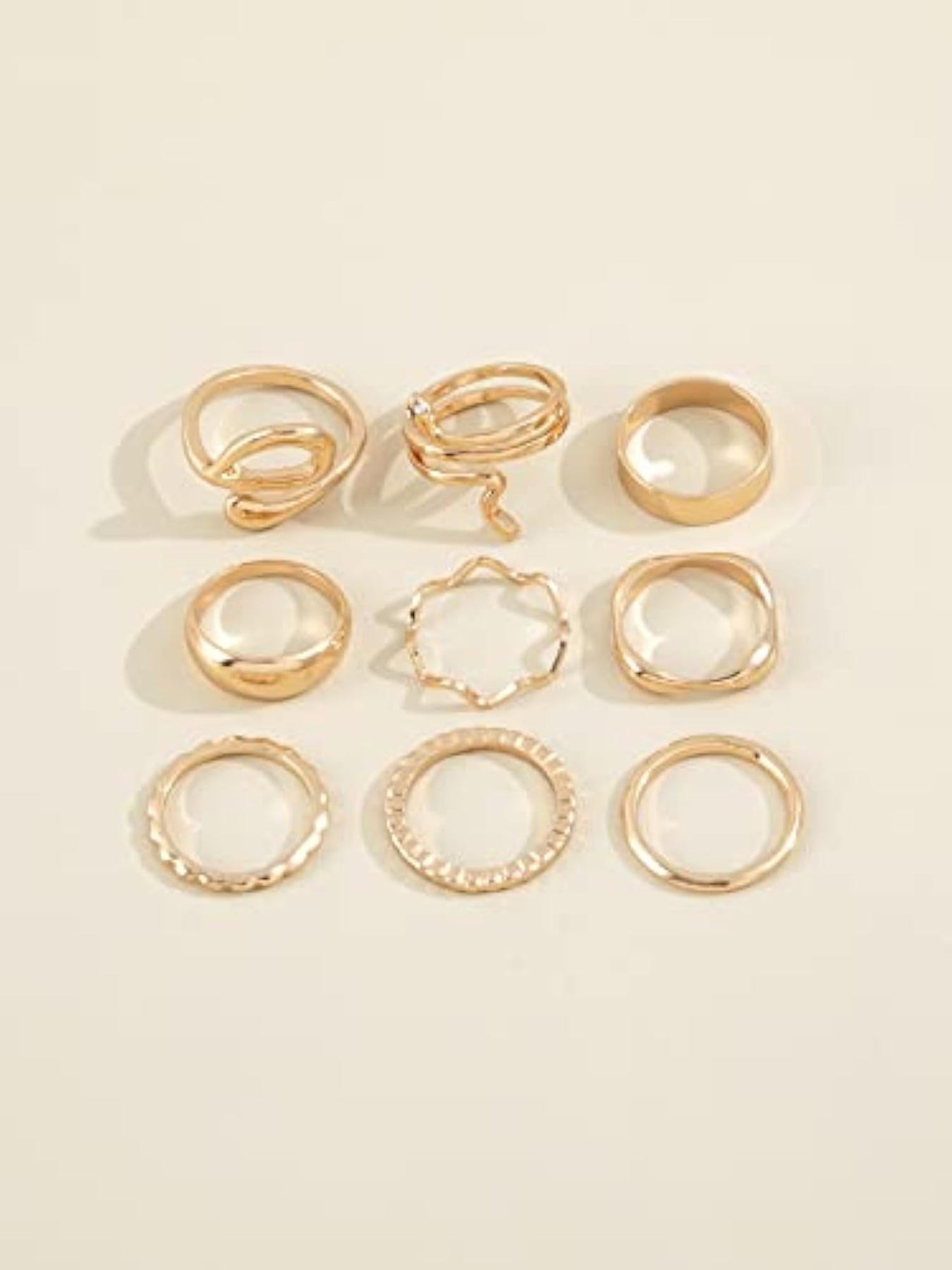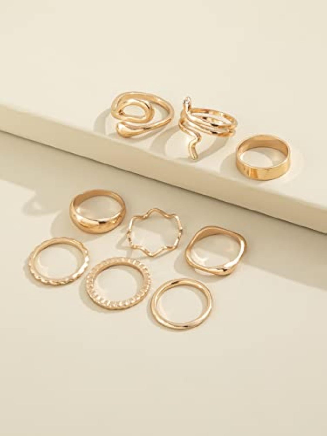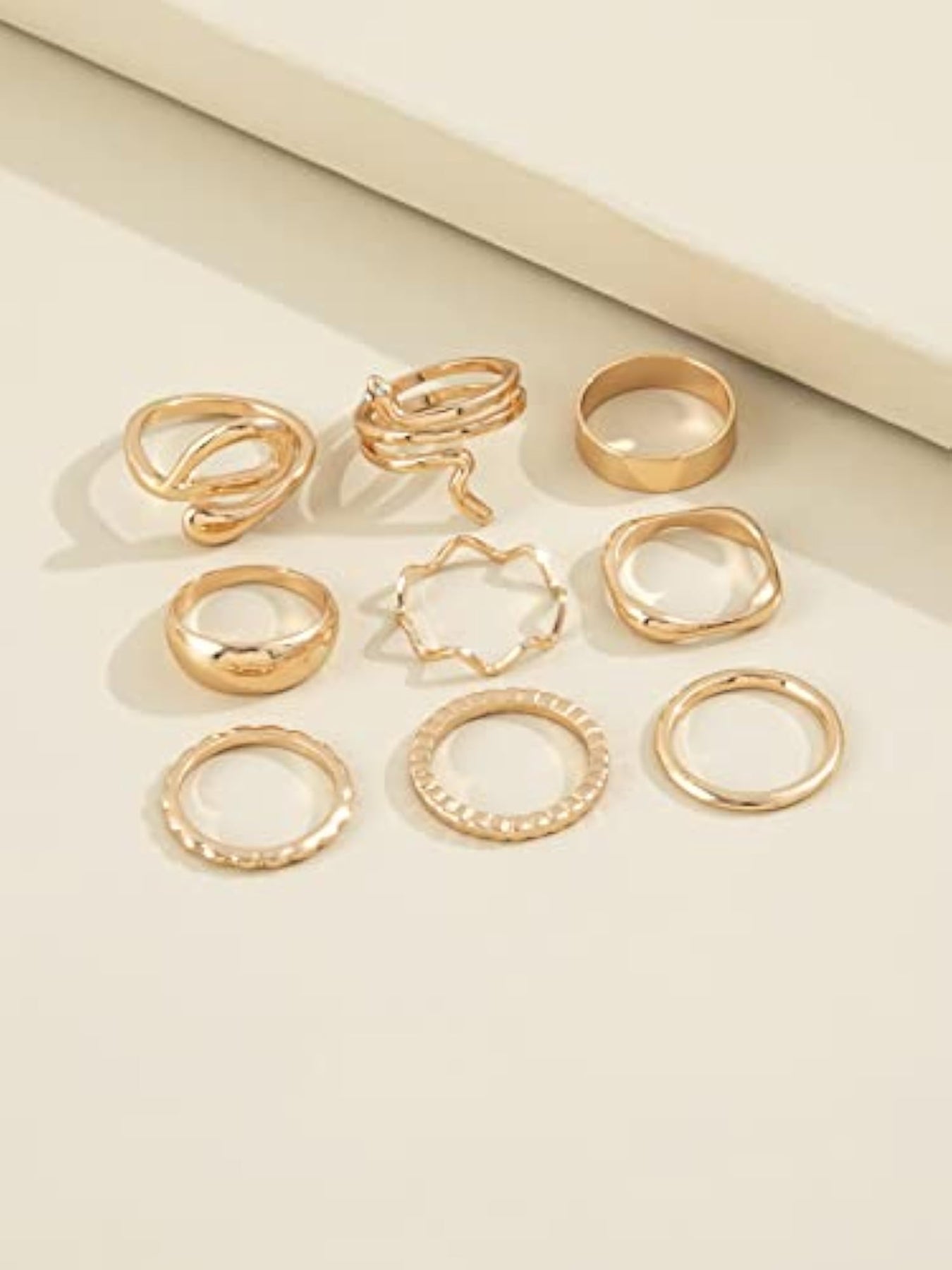 Enhance your style with this set of 9 stylish metal boho midi finger rings. Perfect for everyday wear or special occasions.
