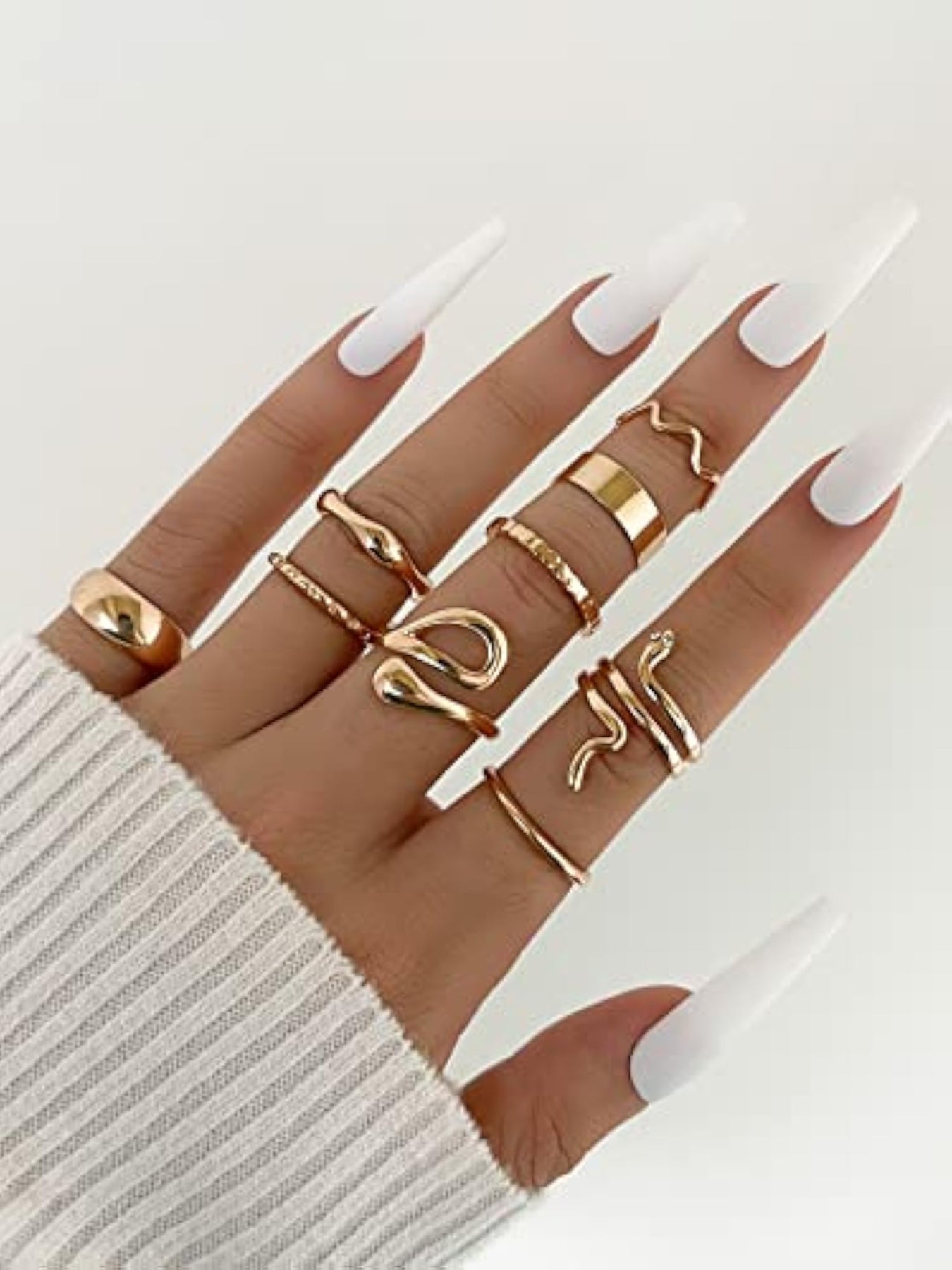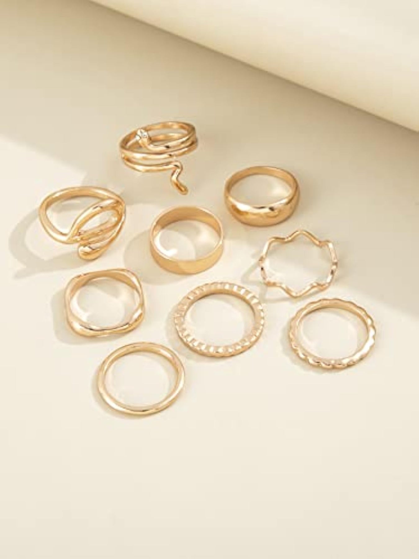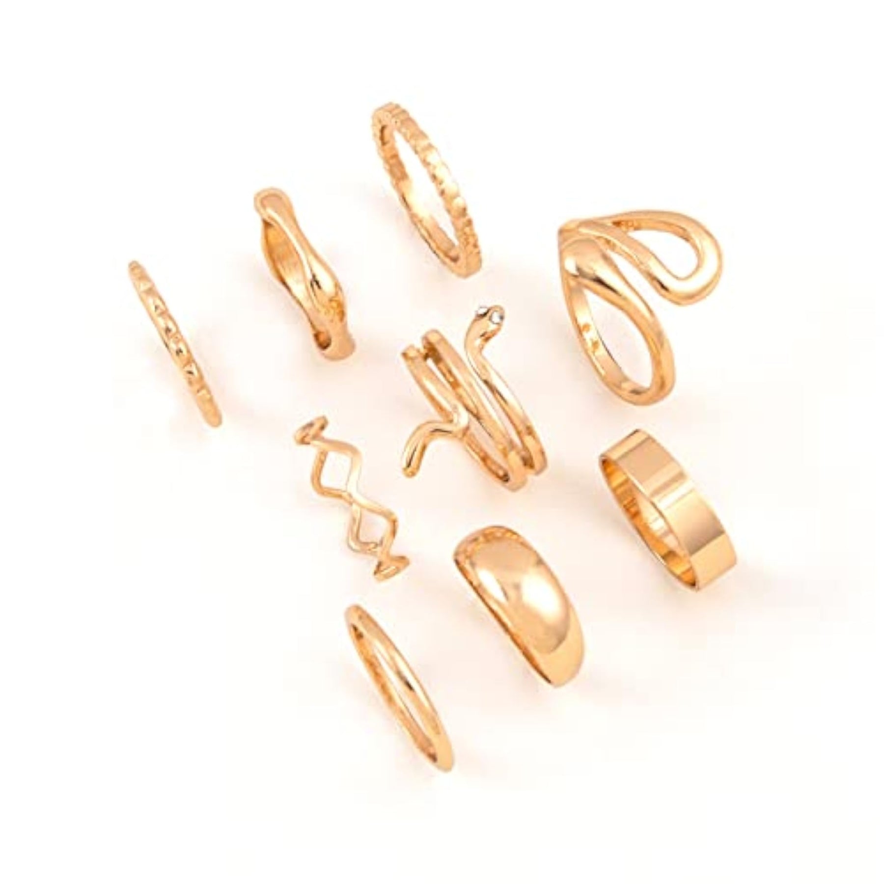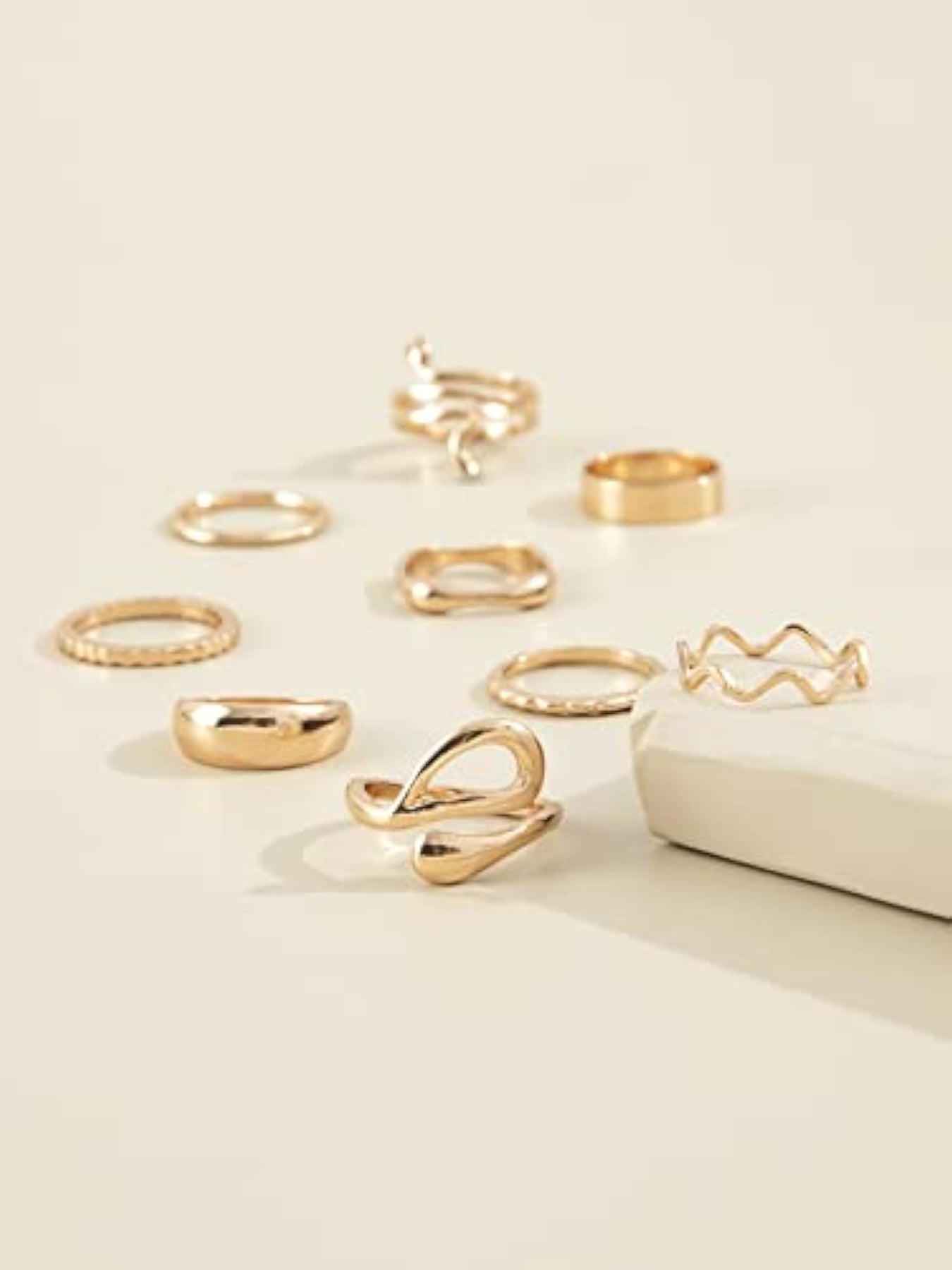 Enhance your style with this set of 9 stylish metal boho midi finger rings. Perfect for everyday wear or special occasions.