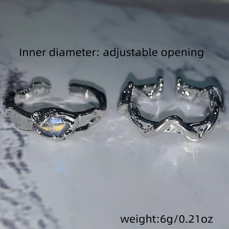 Enhance your style with this stunning set of 2 moonstone rings in irregular shapes. Perfect for everyday wear or special occasions.