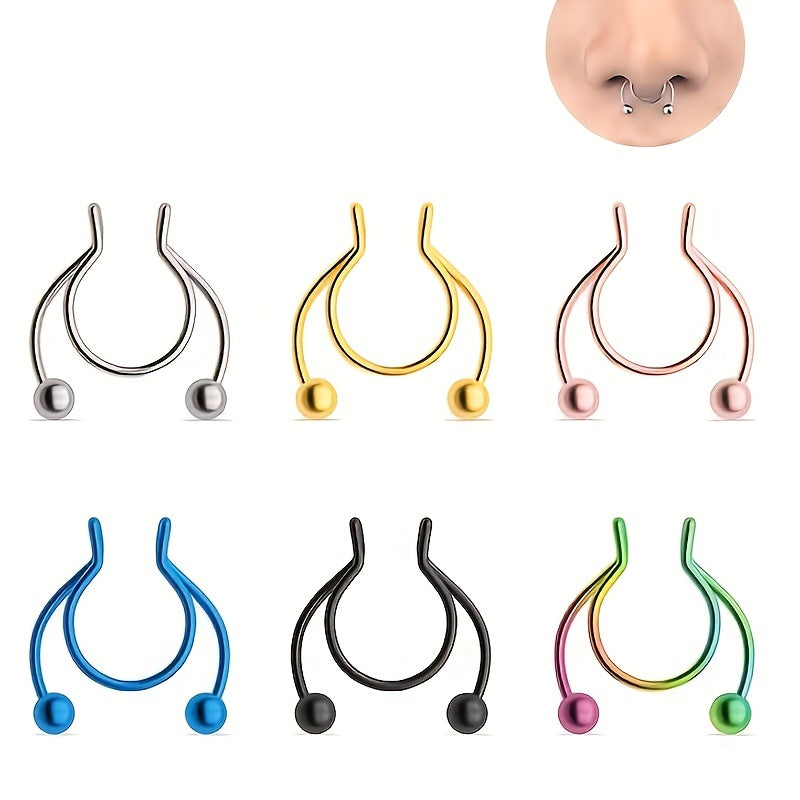 Stylish non-pierced nose ring that can be worn without any piercing. Great for adding a unique touch to your look.