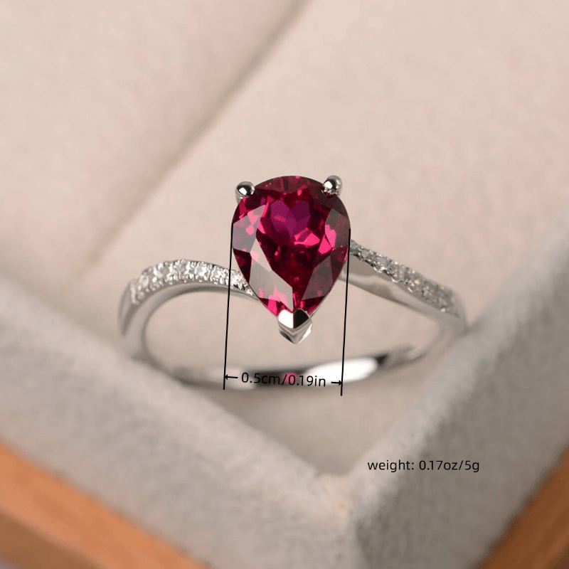 Add a touch of elegance to your evening party look with this stunning red zircon teardrop ring. Perfect for cocktail parties and birthdays.