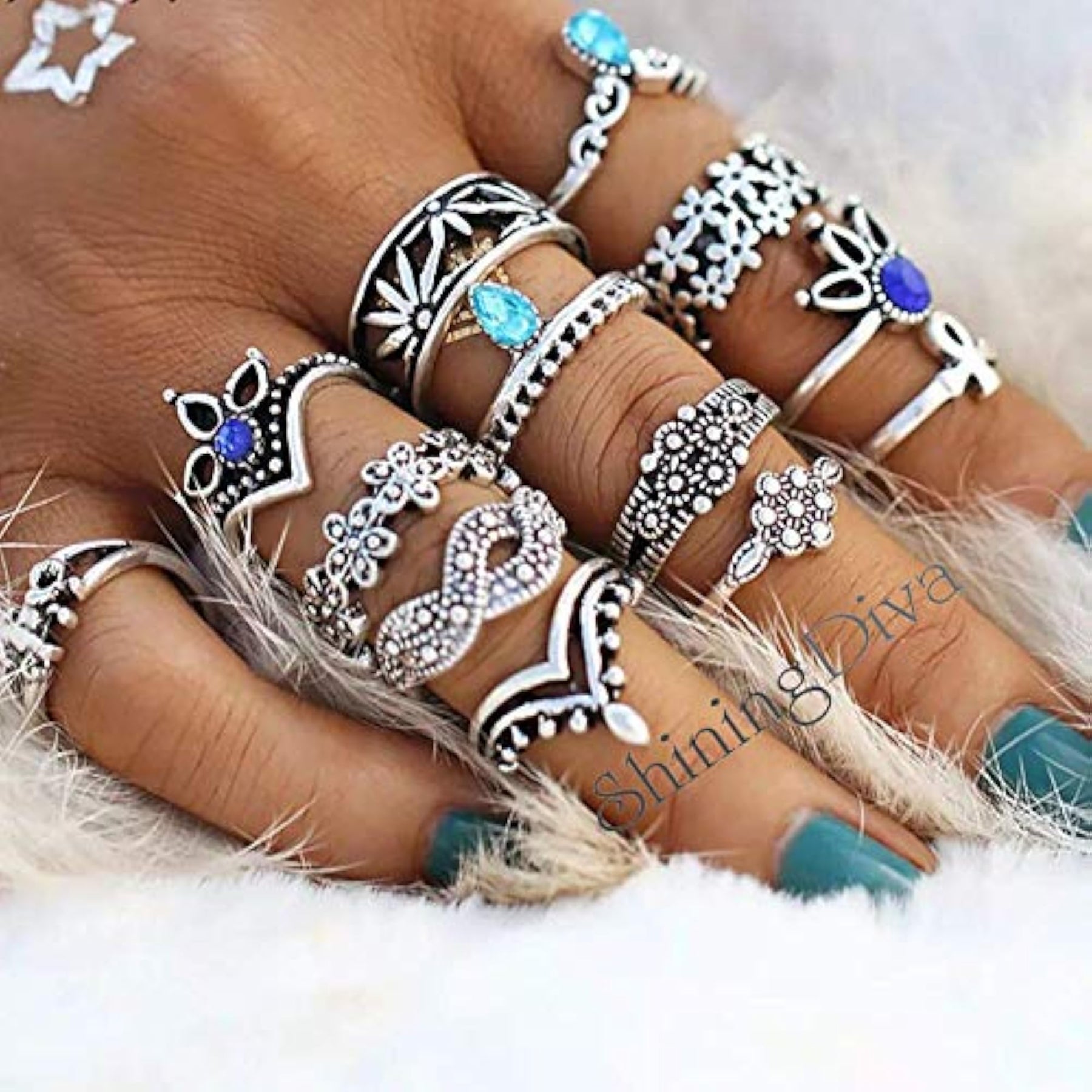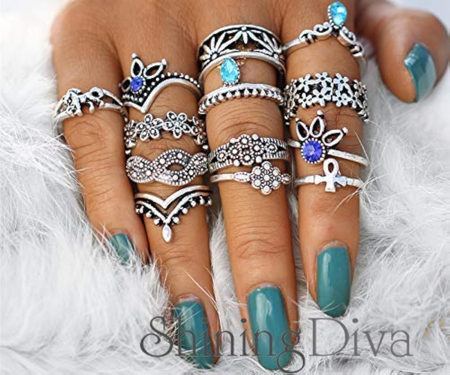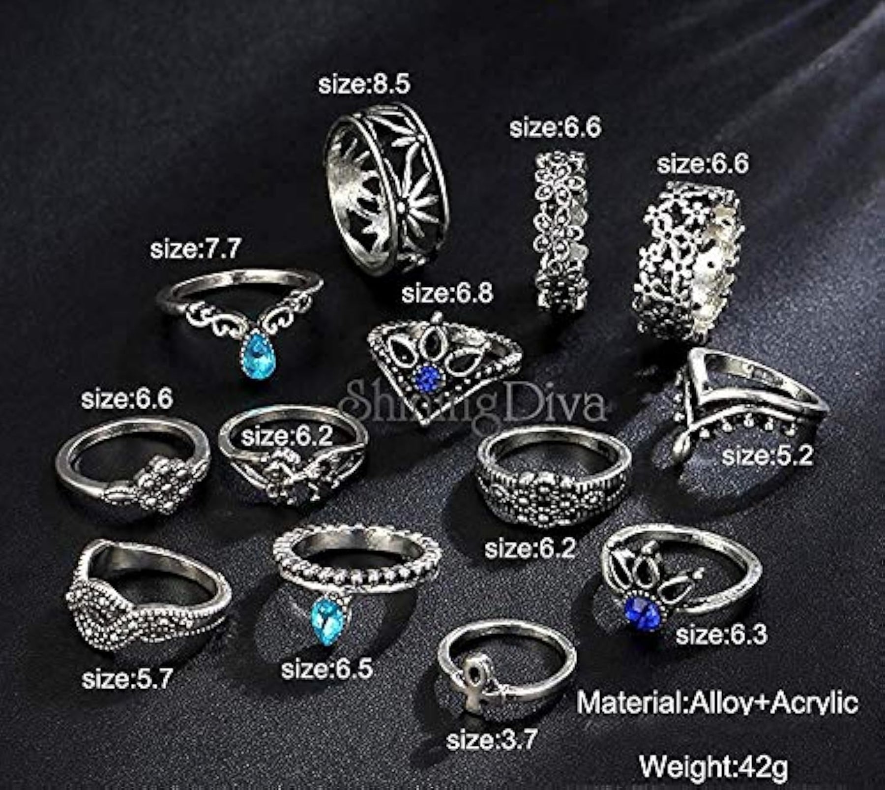 Enhance your style with this set of 13 midi crystal rings. Perfect for stacking or wearing individually, these rings bring a touch of elegance to any outfit.